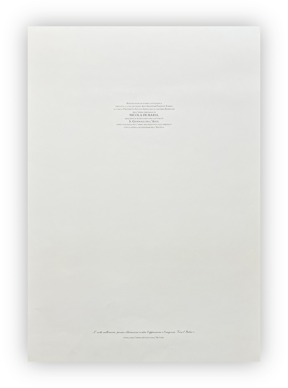 NICOLA DE MARIA (1954) - O notte millenaria: poesia e liberazione contro l'opposizione e l'angoscia. Viva l'Italia!, 2012
