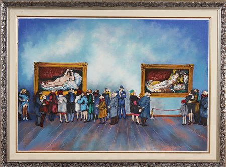 PIACESI WALTER (n. 1929) Maja desnuda. Retouche su cartone telato. Cm 100,00 x 70,00. Firma in basso a destra. Al retro etichetta descrittiva. Cornice presente