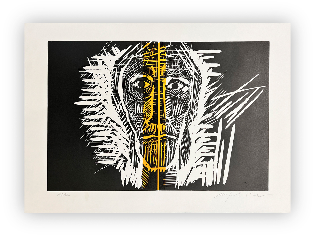 Firma e numerazione (Esemplare 167/300) a matita al fronte