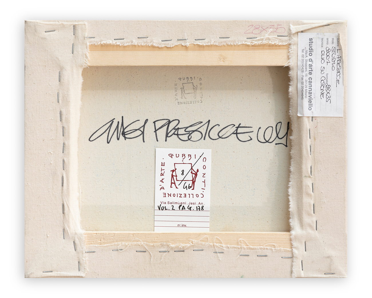 Etichetta dello Studio d'Arte Cannaviello (MI) al retro