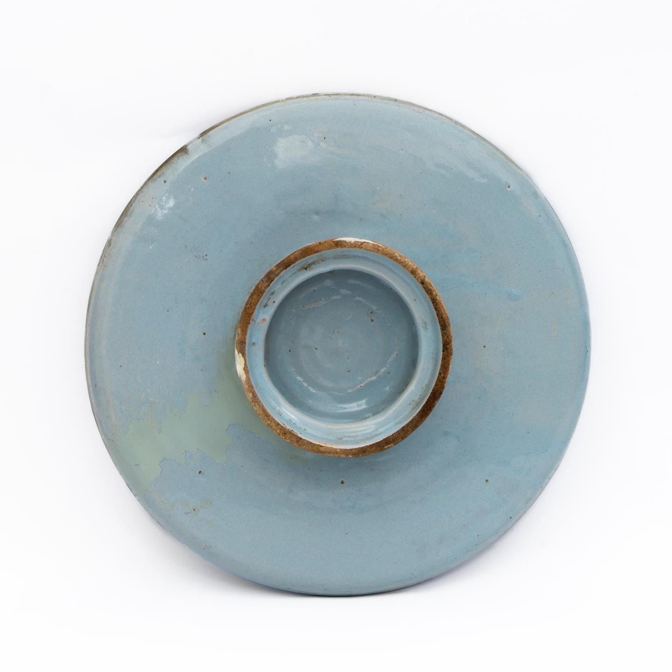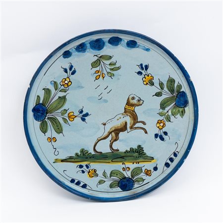 Lotto 25 | Alzatina in smalto berettino con raffigurato cane nel cavetto Manifattura di Castelli del XIX secolo