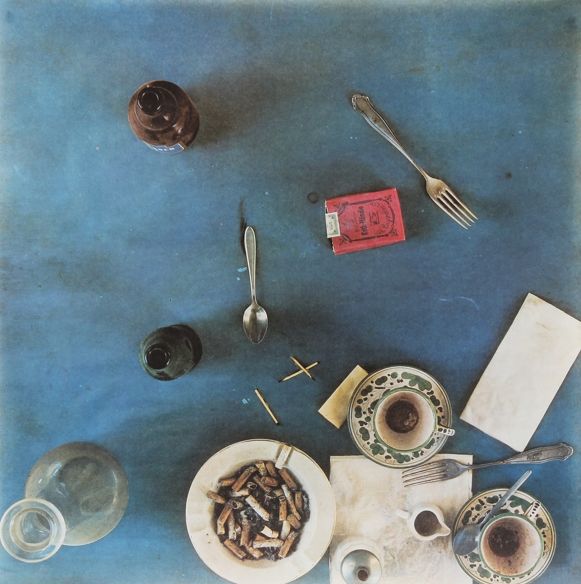 SPOERRI DANIEL (n. 1930) Senza titolo. Poster. Cm 70,00 x 70,00. Lotto composto da n. 2 poster. Riproduzione della tovaglia usata nel ristorante di Daniele Spoerri a Düsseldorf.
