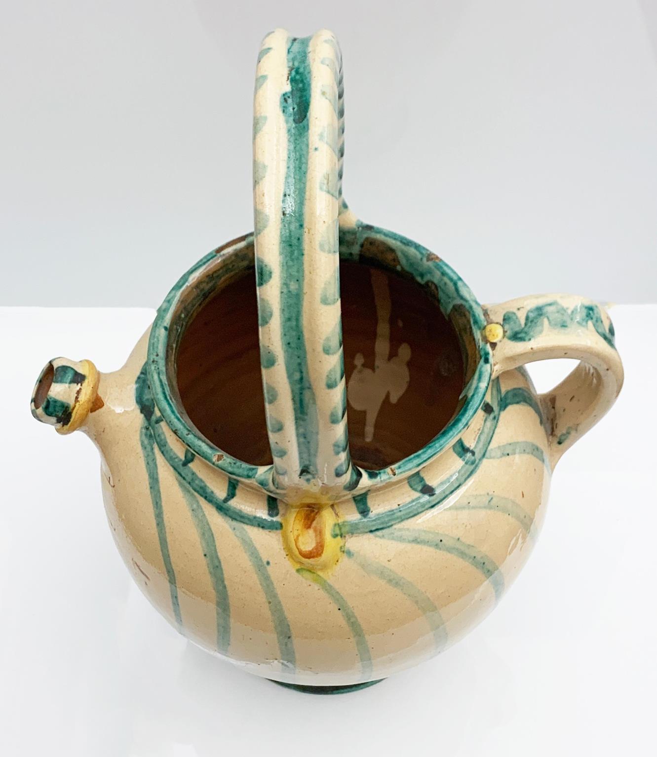 Piccolo orciolo monoansato con decoro a girasole. Manifattura di Caltagirone degli inizi del XX secolo