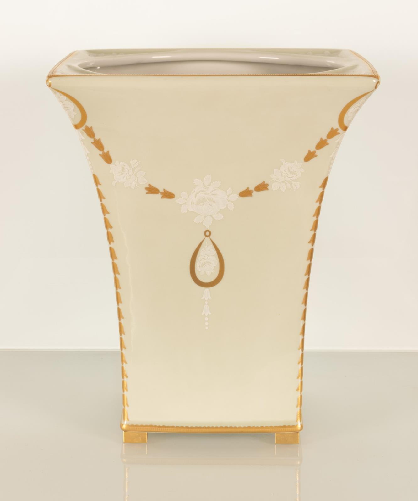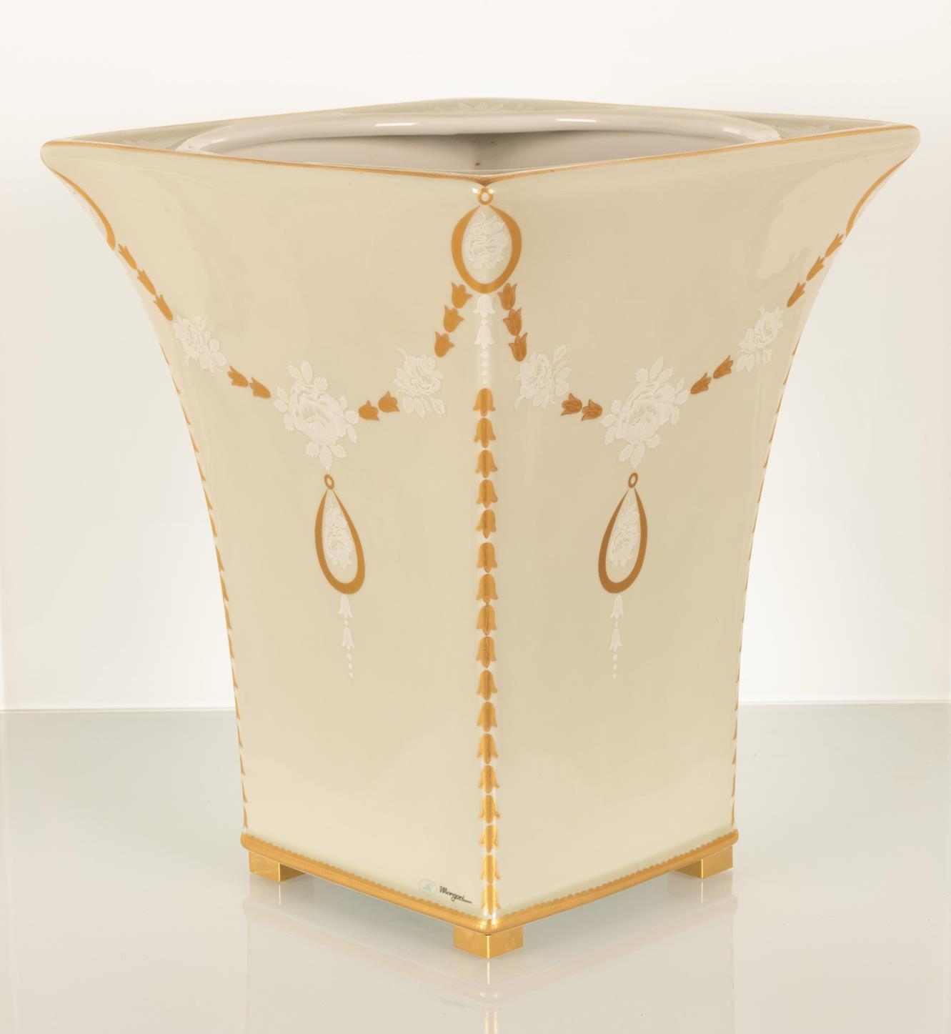 Grande vaso con decorazioni festonate oro. Porcellana Mangani.
