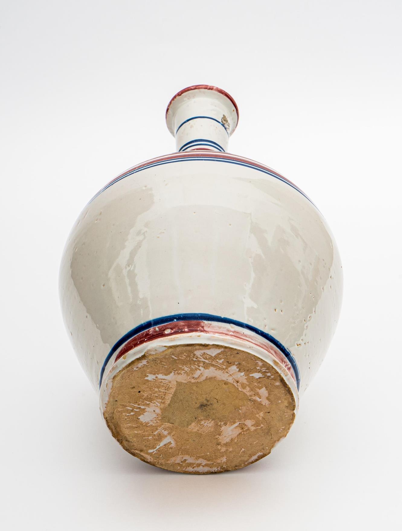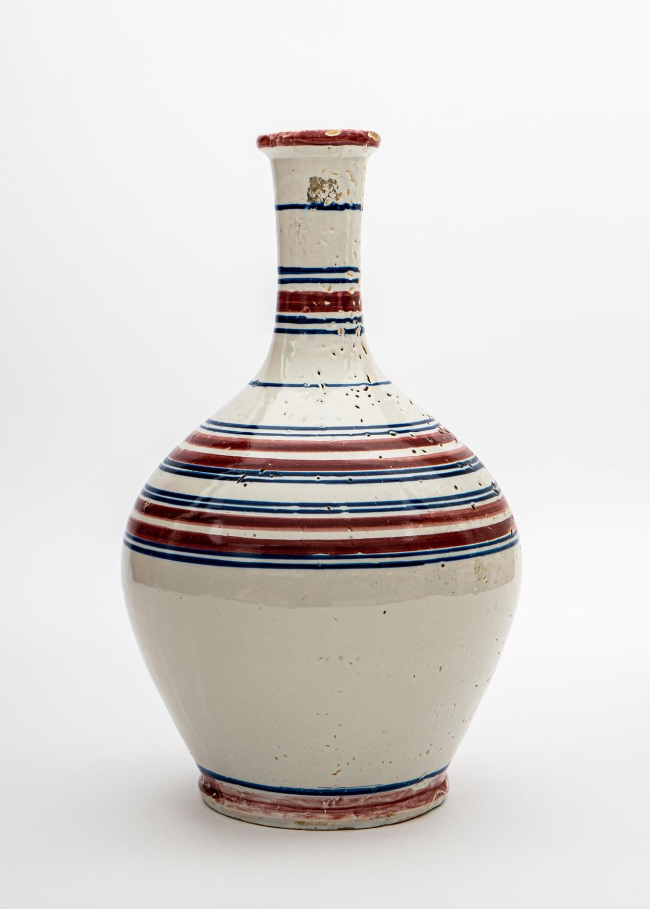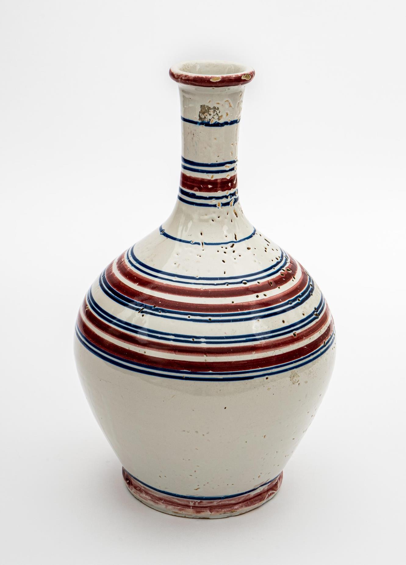 Bottiglia con decoro a cerchi rossi e blu concentrici Manifattura di Castelli del XX secolo
