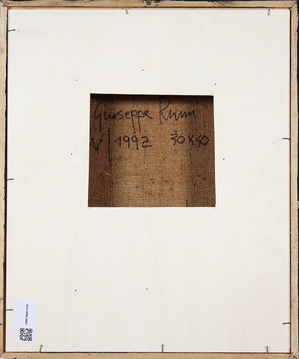RUMI GIUSEPPE (n. 1962) Senza titolo. 1992. Monotipo. Cm 40,00 x 30,00 x 4,50. 1/2. Al retro anno e firma. Cornice presente