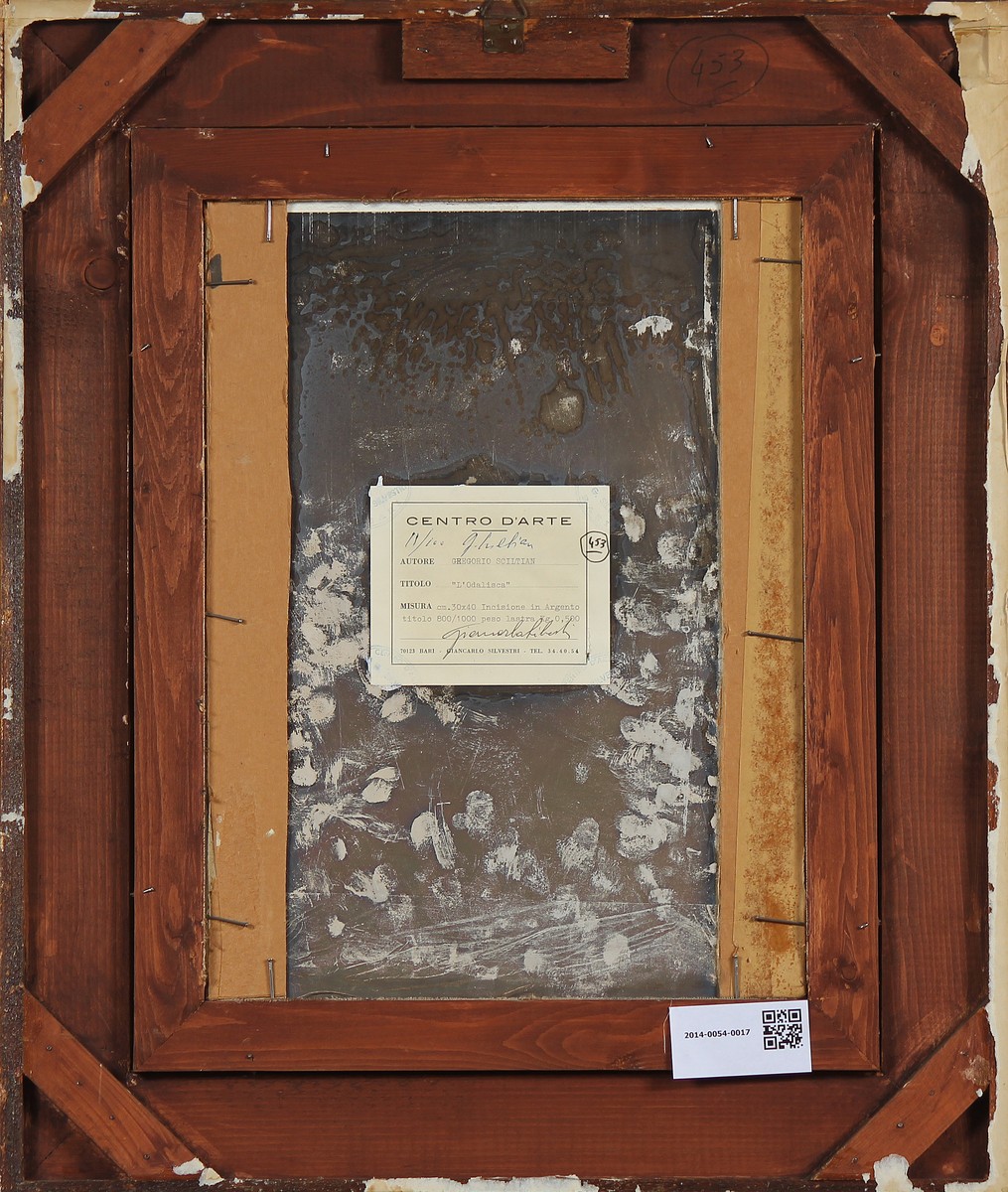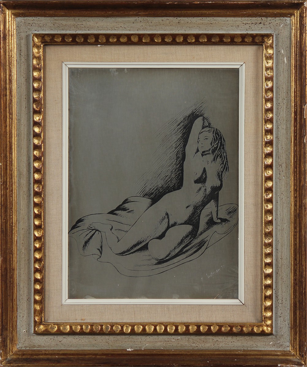 SCILTIAN GREGORIO (1900 - 1985) L' odalisca. Incisione su argento. Cm 30,00 x 40,00. Al retro cartiglio descrittivo. Tir. 11/100. . Cornice presente