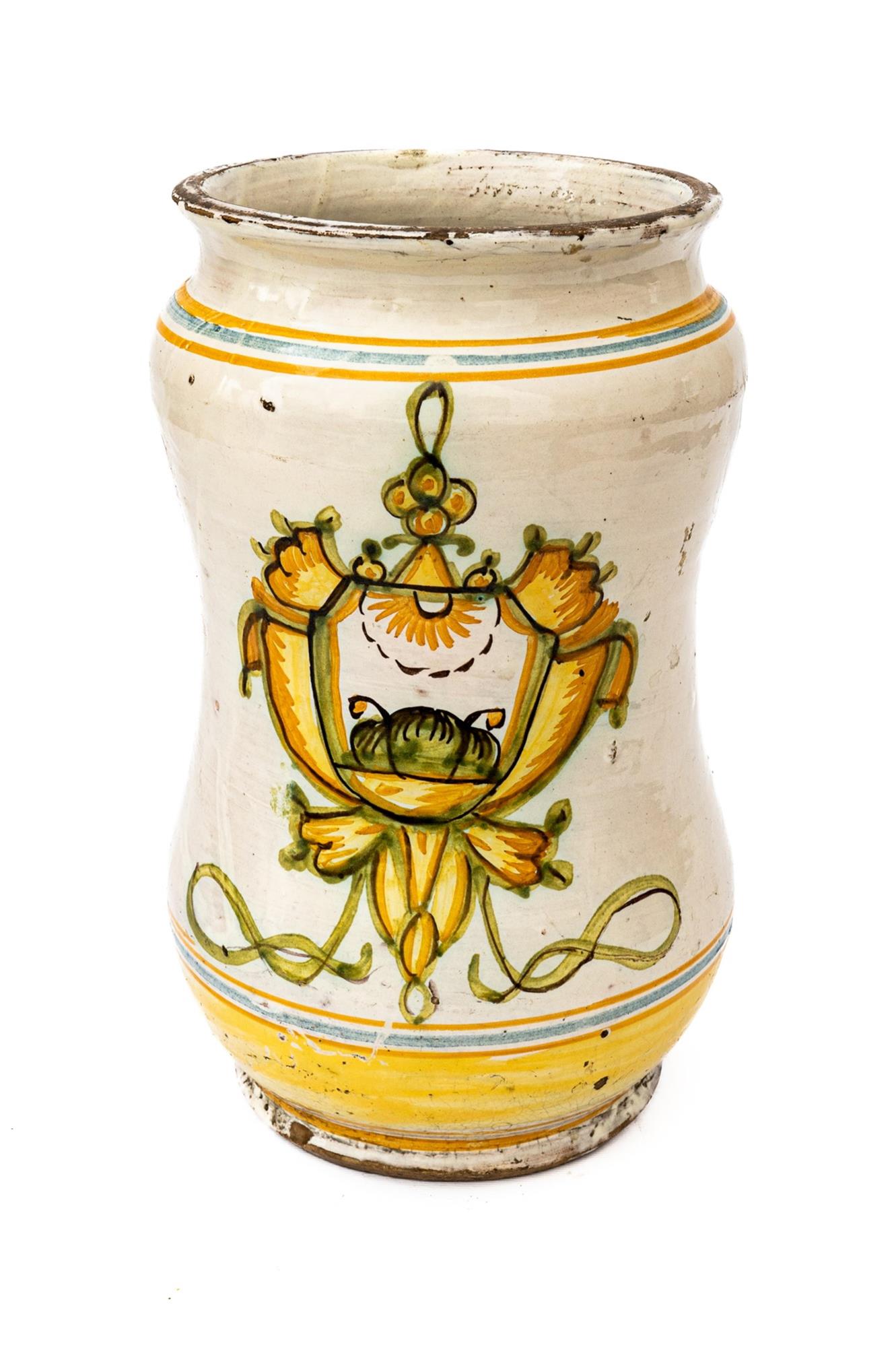 Albarello in maiolica con stemma Manifattura di Cerreto Sannita attiva nel XVIII secolo