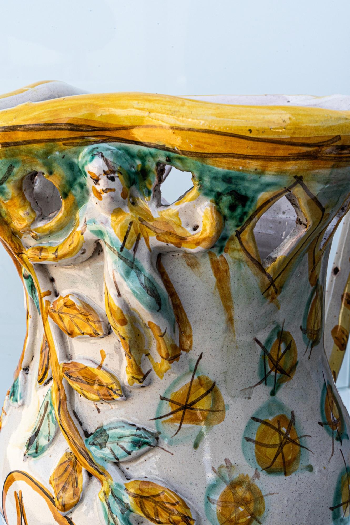 Versatoio con putti e tralci fitomorfi in rilievo Manifattura di Ariano Irpino degli inizi del XX secolo