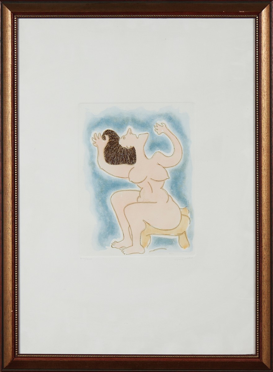 MIGNECO GIUSEPPE (1908 - 1997) Donna Nuda. Acquaforte. Cm 49,00 x 69,00. XIX/XXX. Tiratura a matita in basso a sinistra. Firma a matita in basso a destra. Dimensioni lastra 31.5x24 cm. Cornice presente