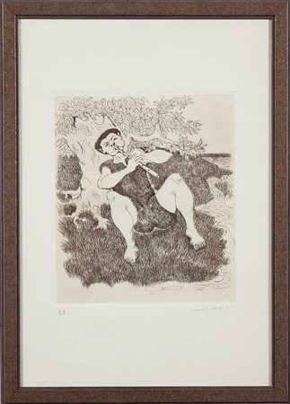 MIGNECO GIUSEPPE (1908 - 1997) Senza titolo. Acquaforte. Cm 34,00 x 50,00. Dimensioni lastra 29x24 cm. Prova d'autore a matita in basso a sinistra, firma a matita in basso a destra. Cornice presente
