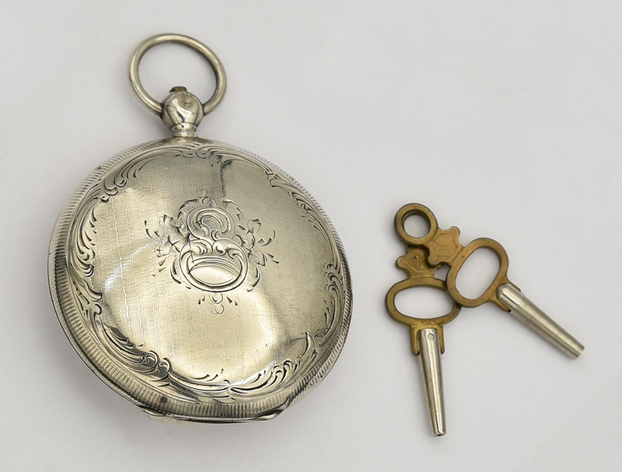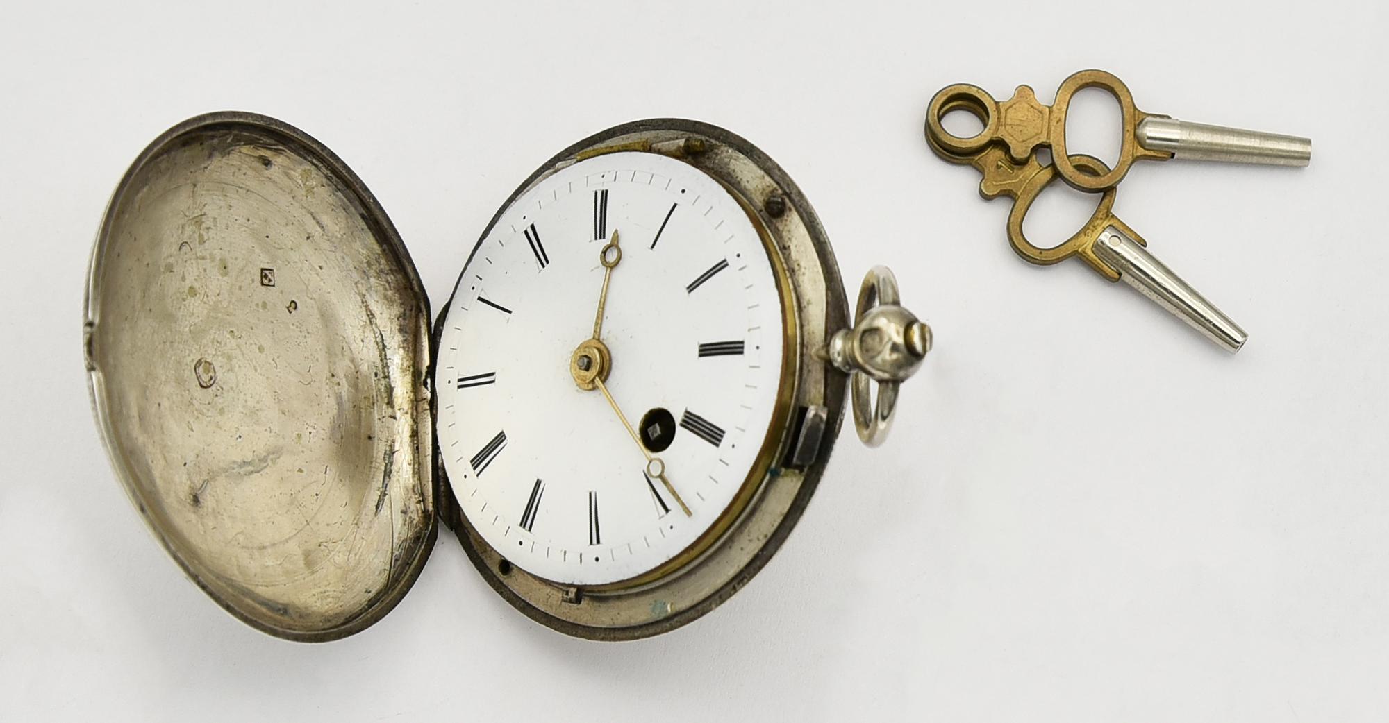 Orologio da tasca, primi 800, argento 800/1000, con chiave