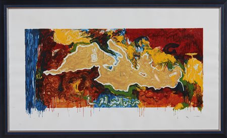 SCHIFANO MARIO (1934 - 1998) Senza titolo. 1996. Serigrafia materica a smalto su carta. Cm 51,50 x 101,00. Prova d'artista. Firma in basso a destra. Opera pubblicata sul catalogo di Mario Schifano, Serigrafie 1196-97 Volume quarto.Edizioni Torcular. Cornice presente