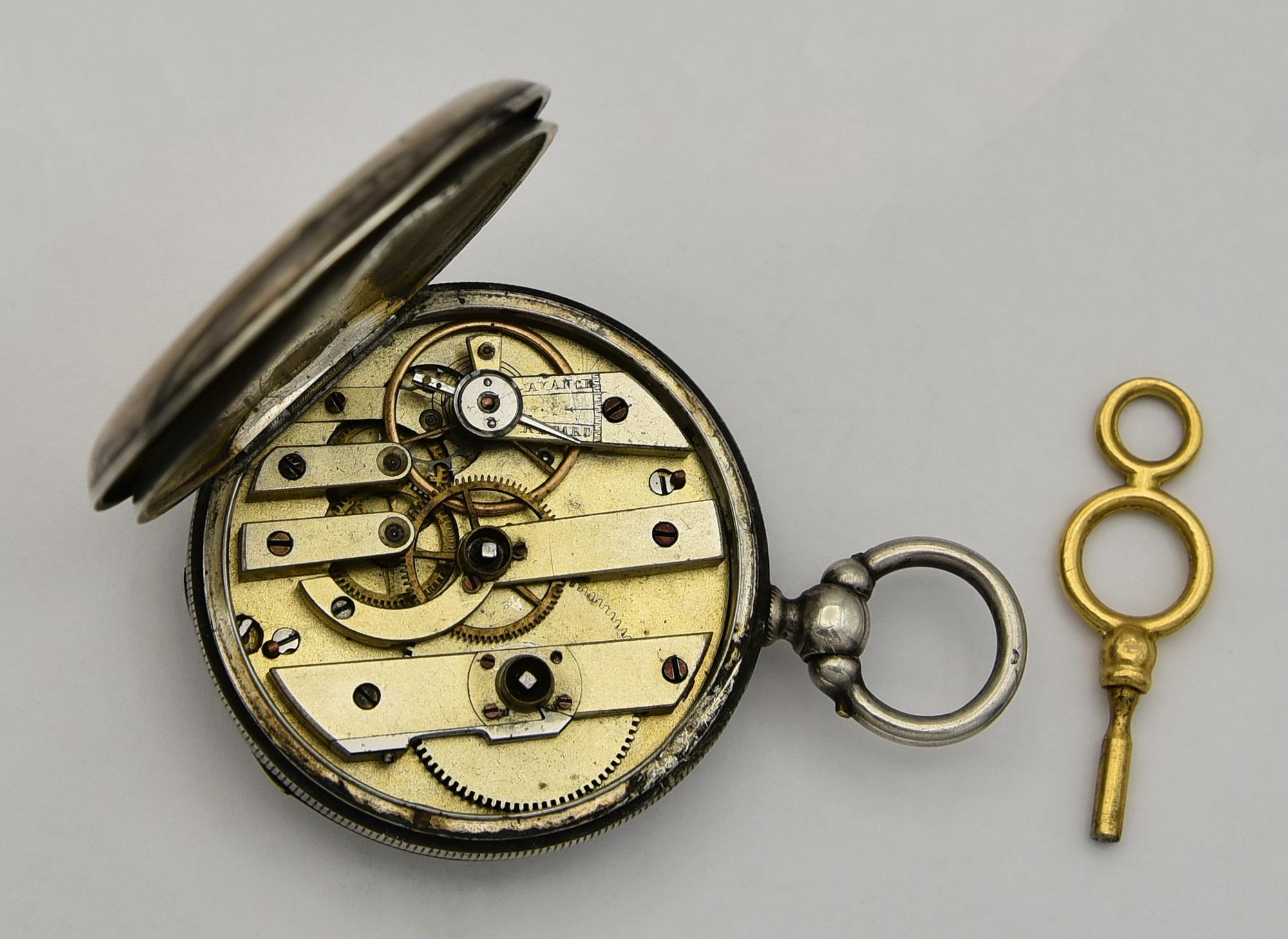 Orologio da tasca, Francia, primi 900, argento 800/1000, con chiave CASSA: in...