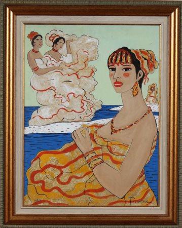 FIUME SALVATORE (1915 - 1997) Somale. Serigrafia su broccato. Cm 60,00 x 80,00. 92/125, . Cornice presente