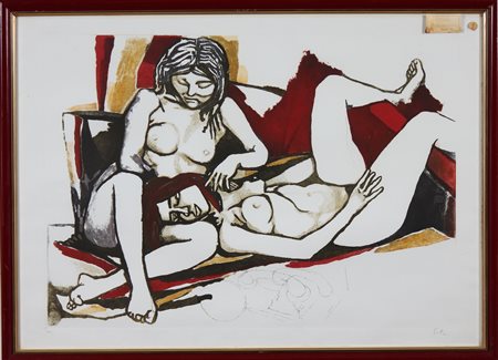 GUTTUSO RENATO (1912 - 1987) Nudi femminili. Litografia. Cm 100,00 x 73,00. P. A. in basso a sinistra. Cornice presente