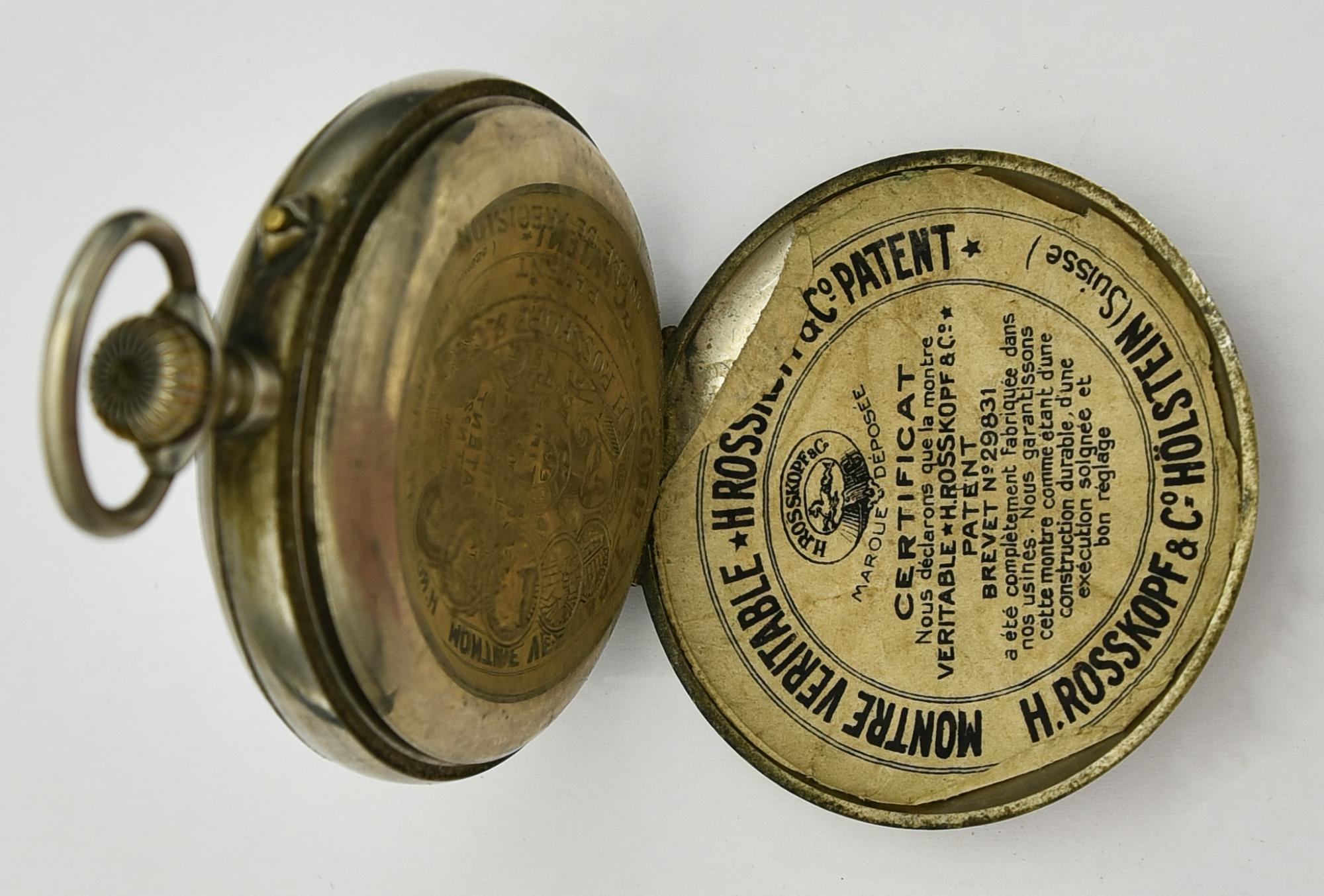 MOVIMENTO: a carica manuale con sistema Roskopf; sul meccanismo inciso: "BREVET/2931/GARANTI VERITABLE"; marchiato: "H.ROSSKPF & Co"