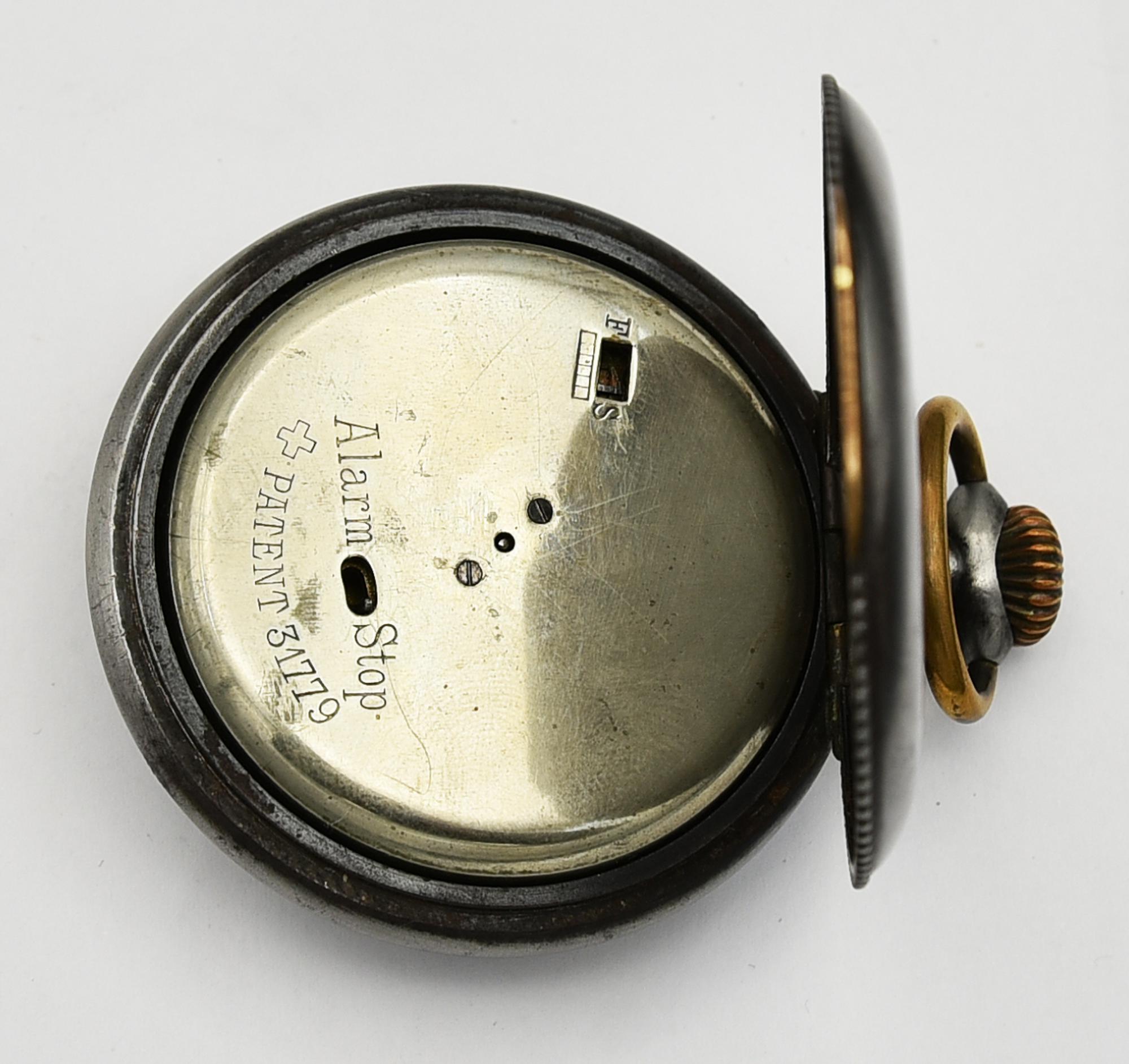 CASSA: in acciaio con doppio fondello; sulla superficie interna del fondello piu' interno inciso: "Alarm Stop/Swiss Patent 31779"