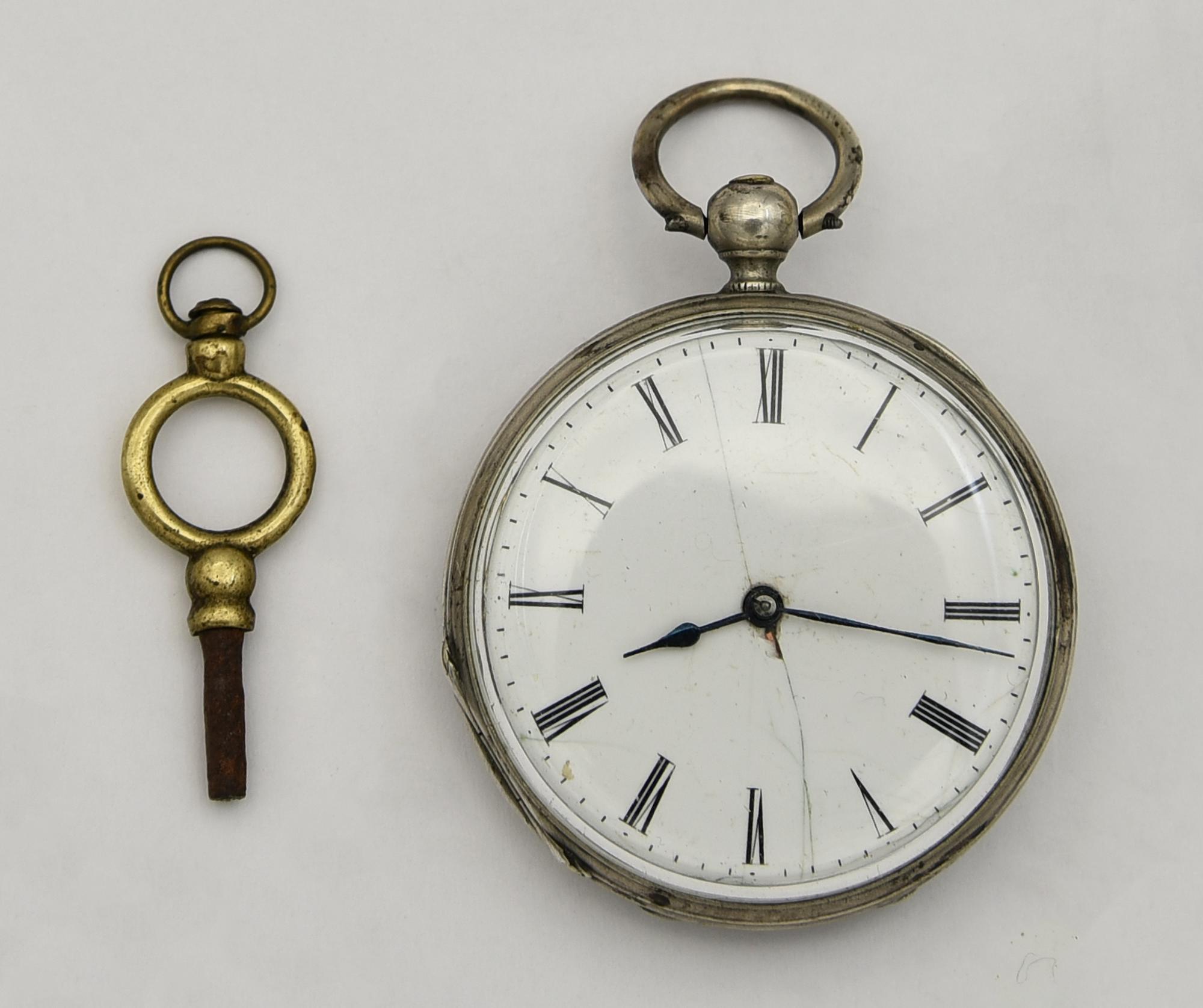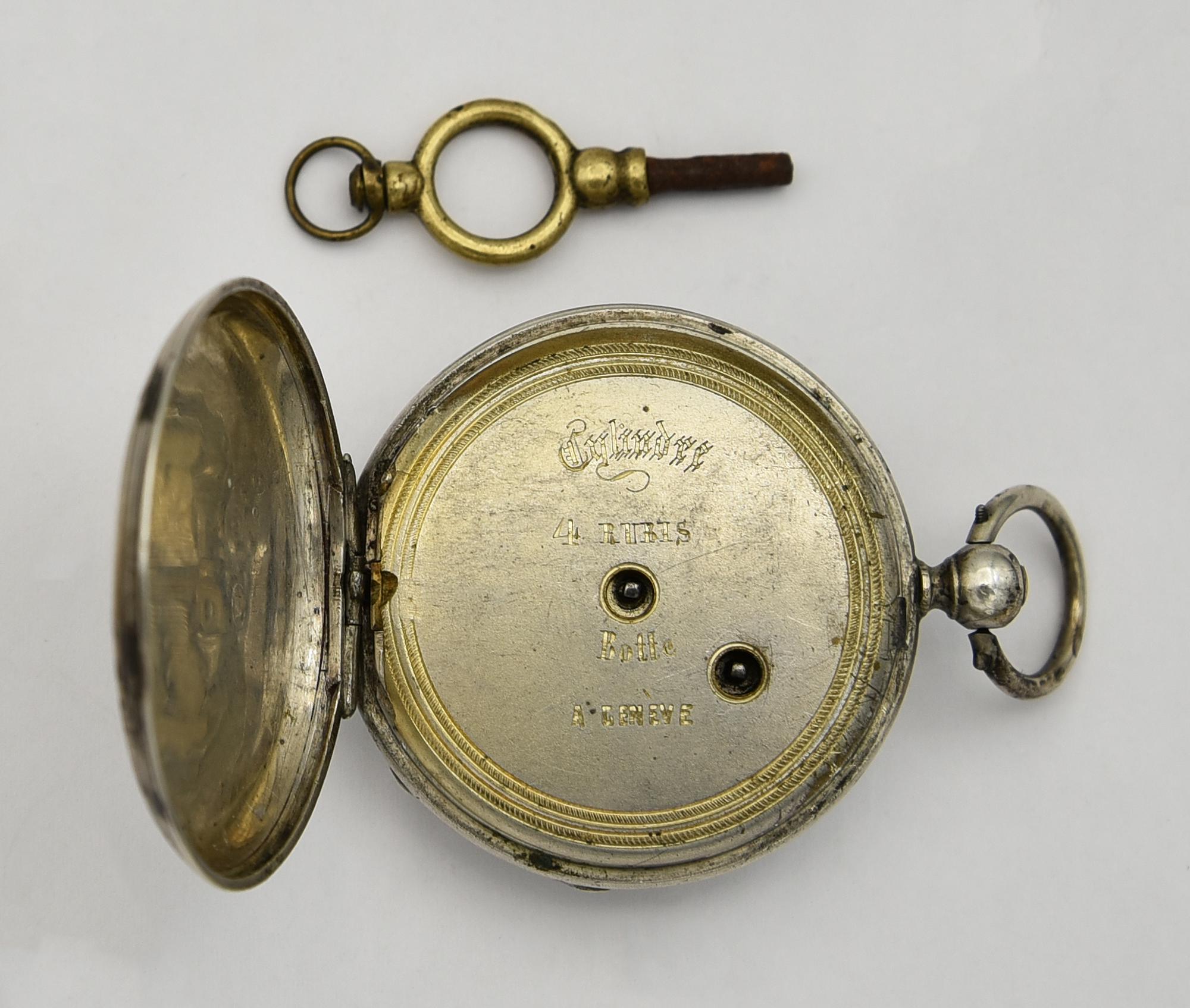Orologio da tasca in metallo con chiave Botte, Geneve, primi 900
