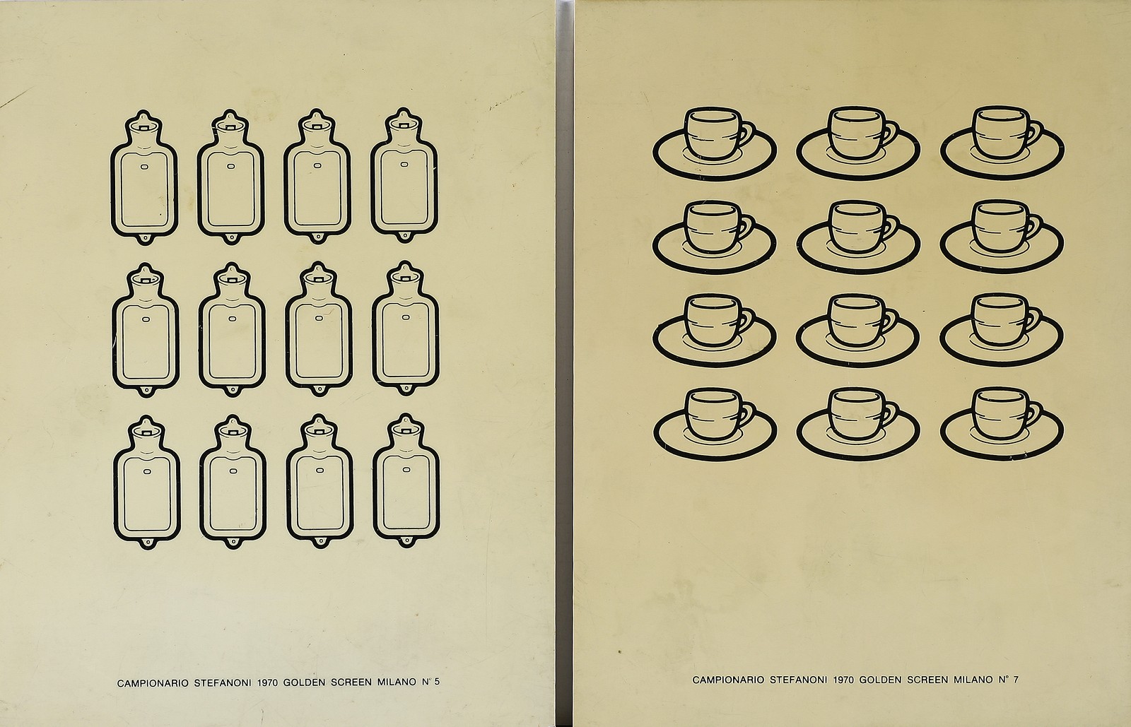 STEFANONI TINO (n. 1937) Campionario Stefanoni. 1970. Serigrafia. Cm 18,00 x 24,00. Lotto formato da due plastiche serigrafate.