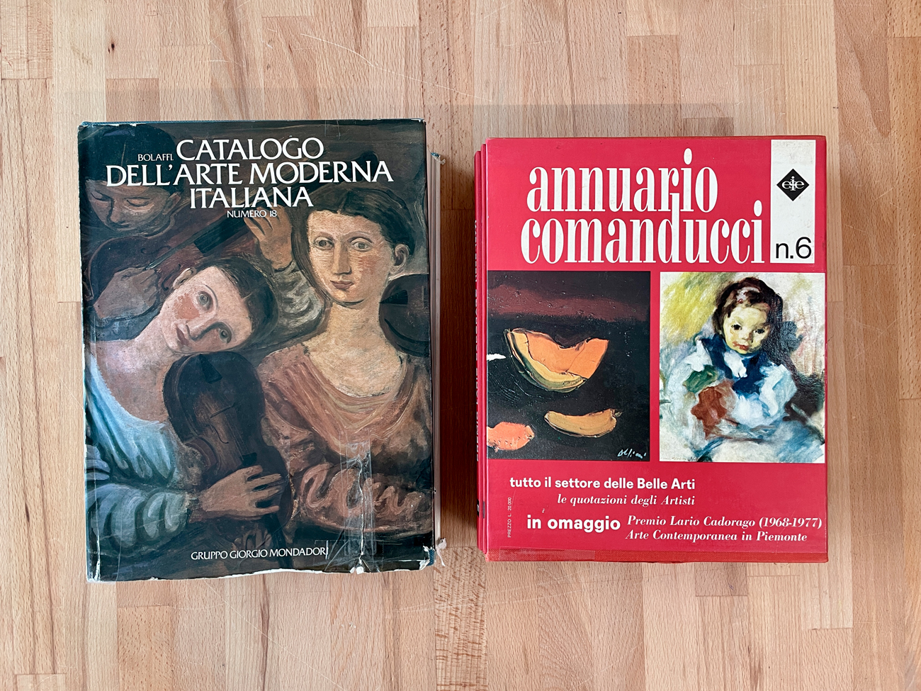 Cofanetto contenente 3 volumi riccamente illustrati: Annuario Comanducci N.6; Premio Lario Cadorago (1988-1977); Arte contemporanea in Piemonte