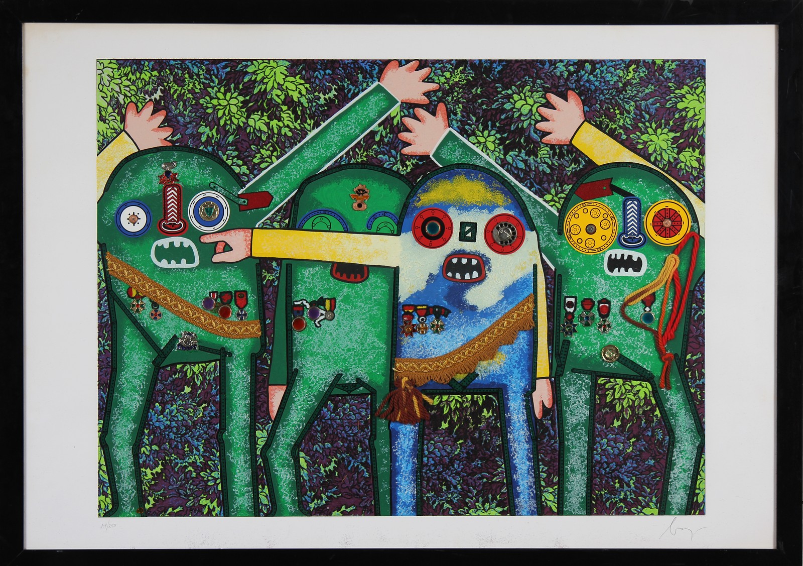 BAJ ENRICO (1924 - 2003) Senza Titolo. Serigrafia polimaterica. Cm 100,00 x 70,00. 109/250. Tiratura a matita in basso a sinistra. Firma a matita in basso a destra. Cornice presente