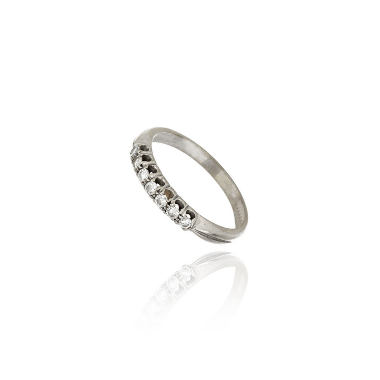 Anello in oro bianco a rivière con 7 piccoli diamanti del peso complessivo di circa 0 35 ct.