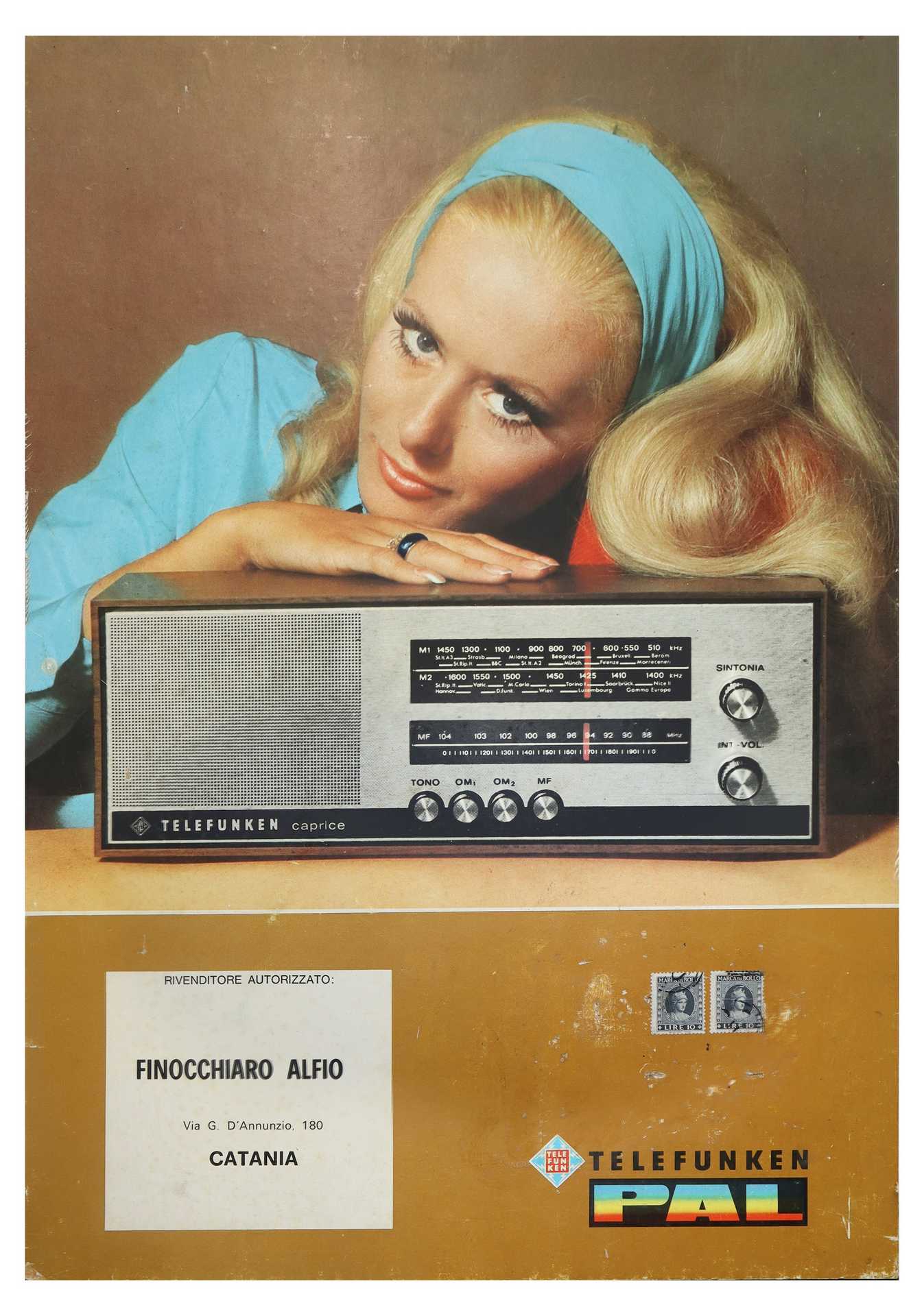 Telefunken - Cartonato da banco su masonite radio, 60s/70s cm 48x33 Presenti marche da bollo e normali segni del tempoPresenti marche da bollo e normali segni del tempo