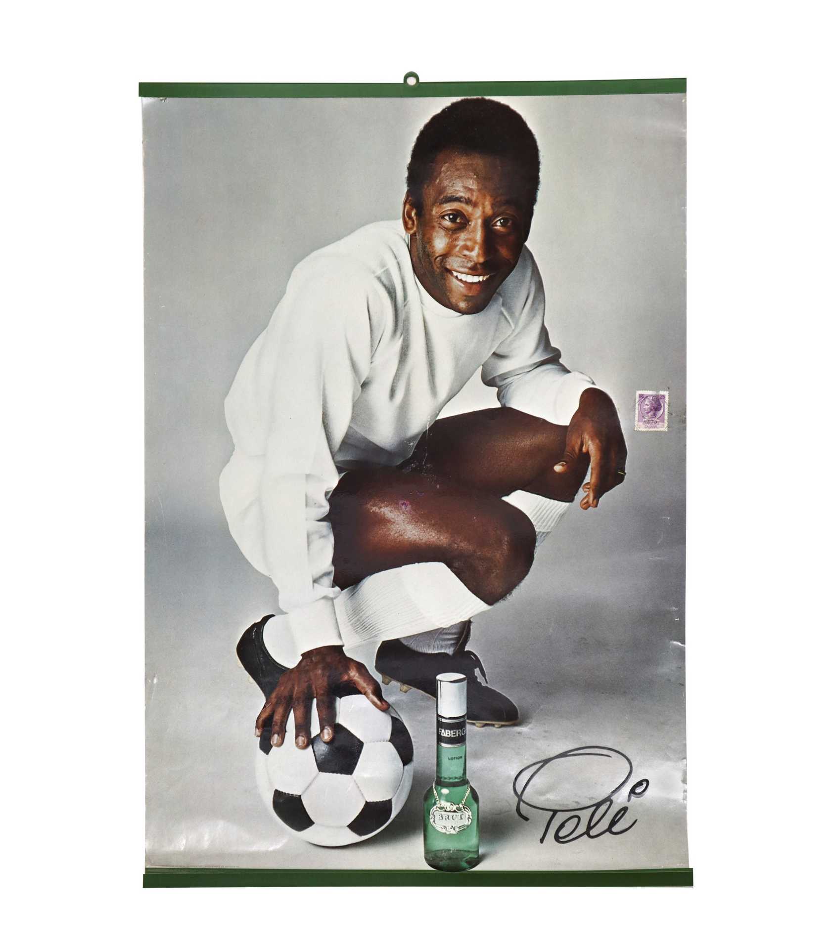 Brut 33 - Locandina pubblicitaria Pelè per dopobarba, 1977 h cm 49x33 Presenti piccoli ritocchi e segni d'usoPresenti piccoli ritocchi e segni d'uso