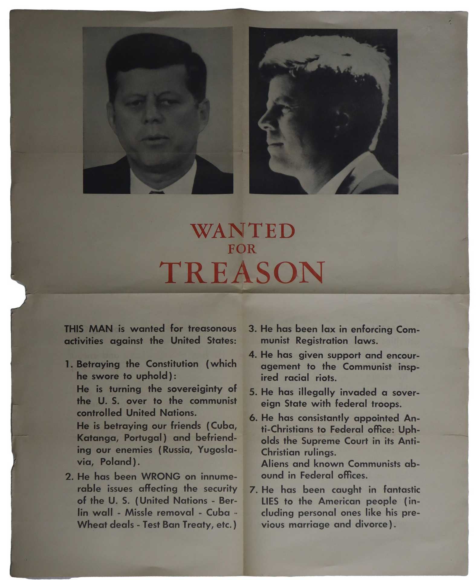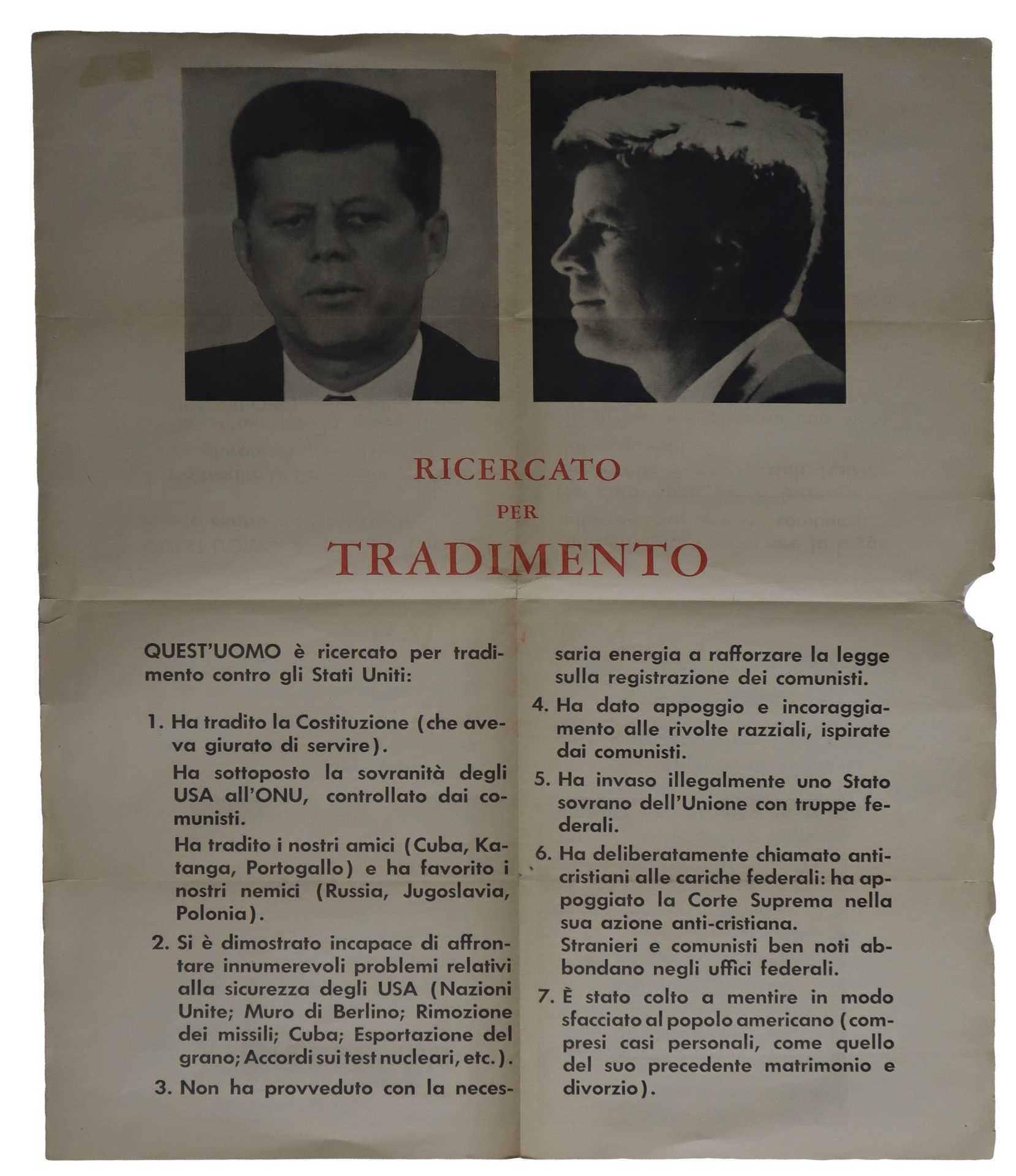 Manifesto Kennedy ricercato per tradimento, 1972 cm 75 x cm 60