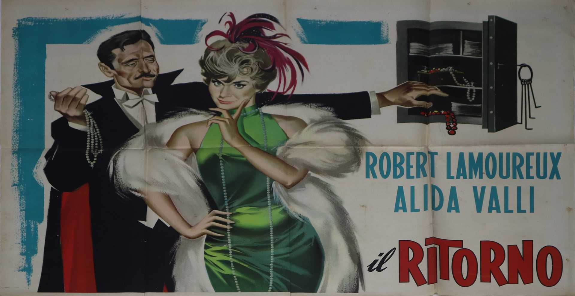 Sandro Symeoni - Manifesto cinema quattro fogli '''Il ritorno di Arsenio Lupin'', 1959 cm 140 x cm 200 Prima Edizione Italiana, normali segni d'usoPrima Edizione Italiana, normali segni d'uso