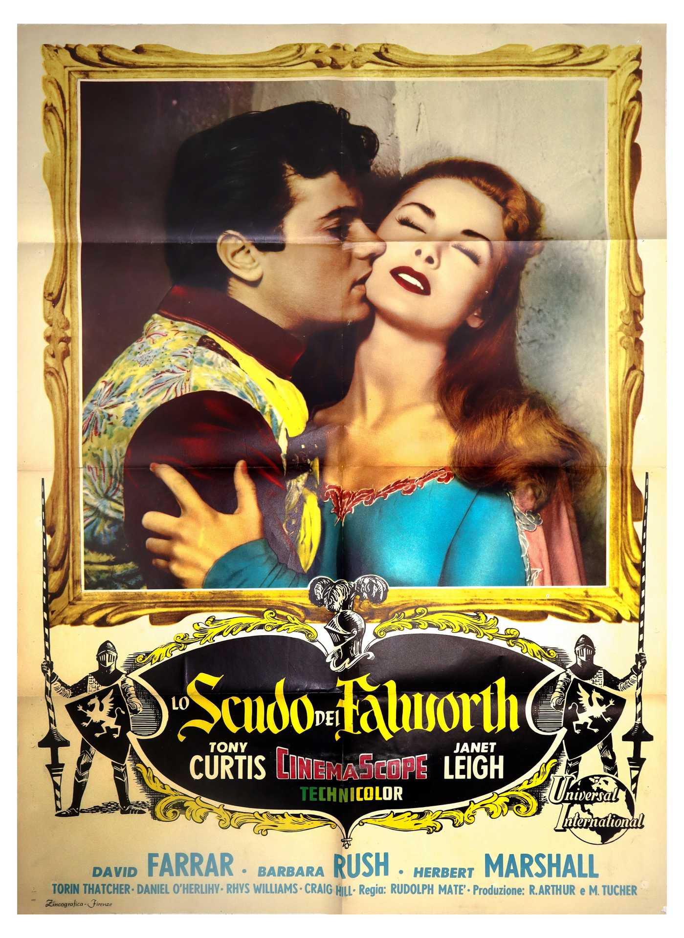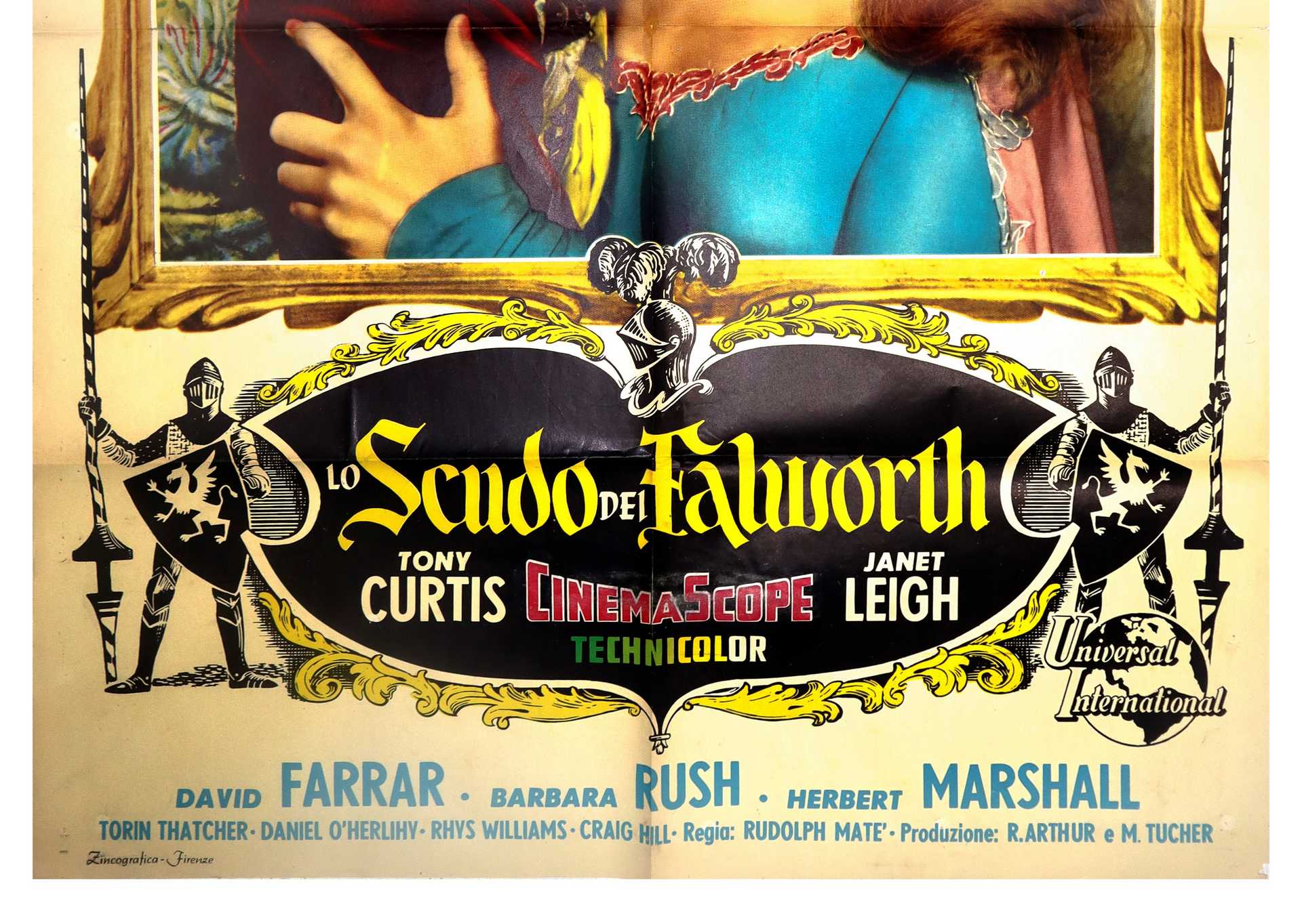 Manifesto cinema due fogli ''Lo scudo di Falowhorth, 1955 cm 140x100 Prima edizione, Zincografia - Firenze. Presenti normali segni d'usoPrima edizione, Zincografia - Firenze. Presenti normali segni d'uso
