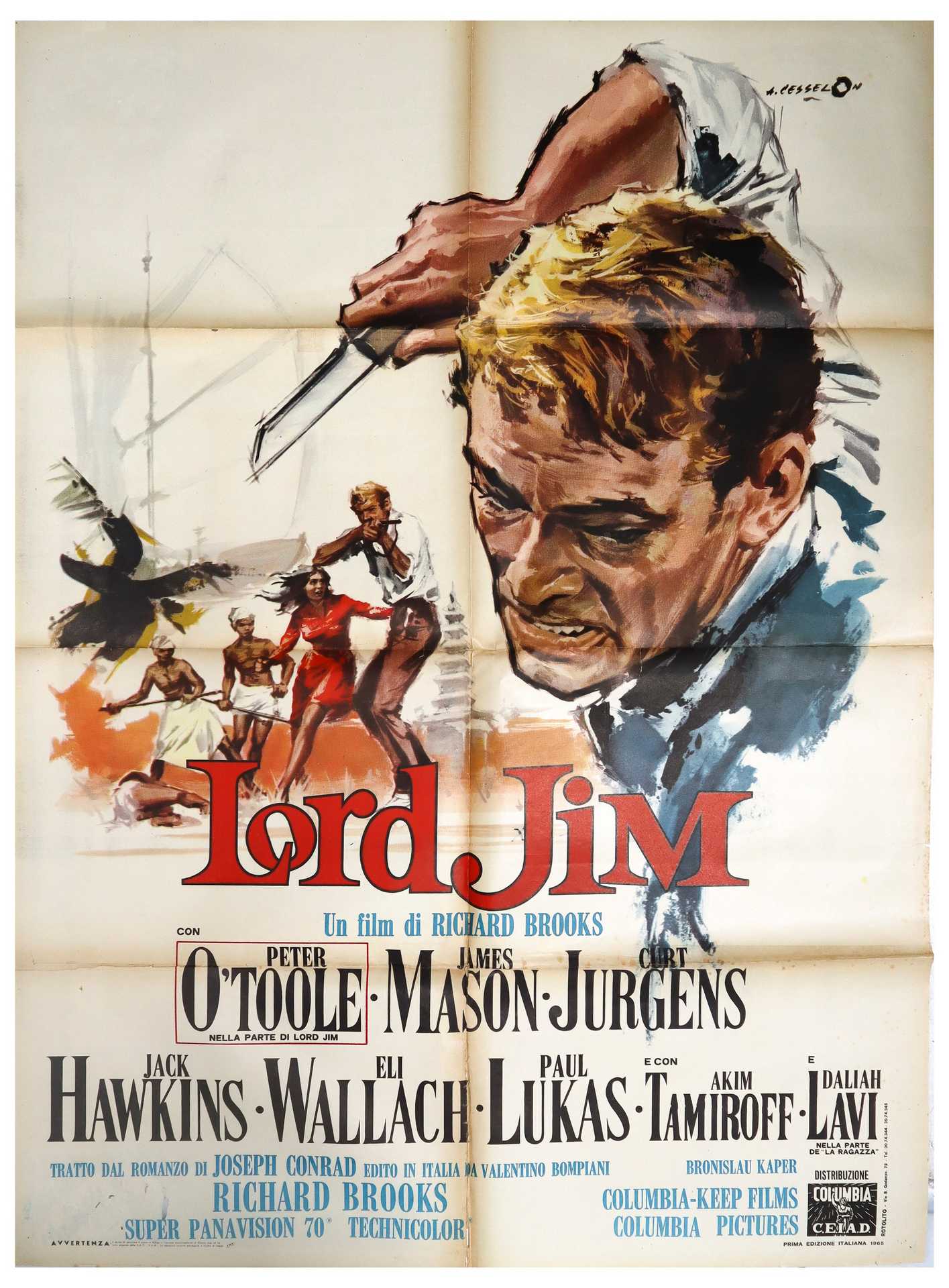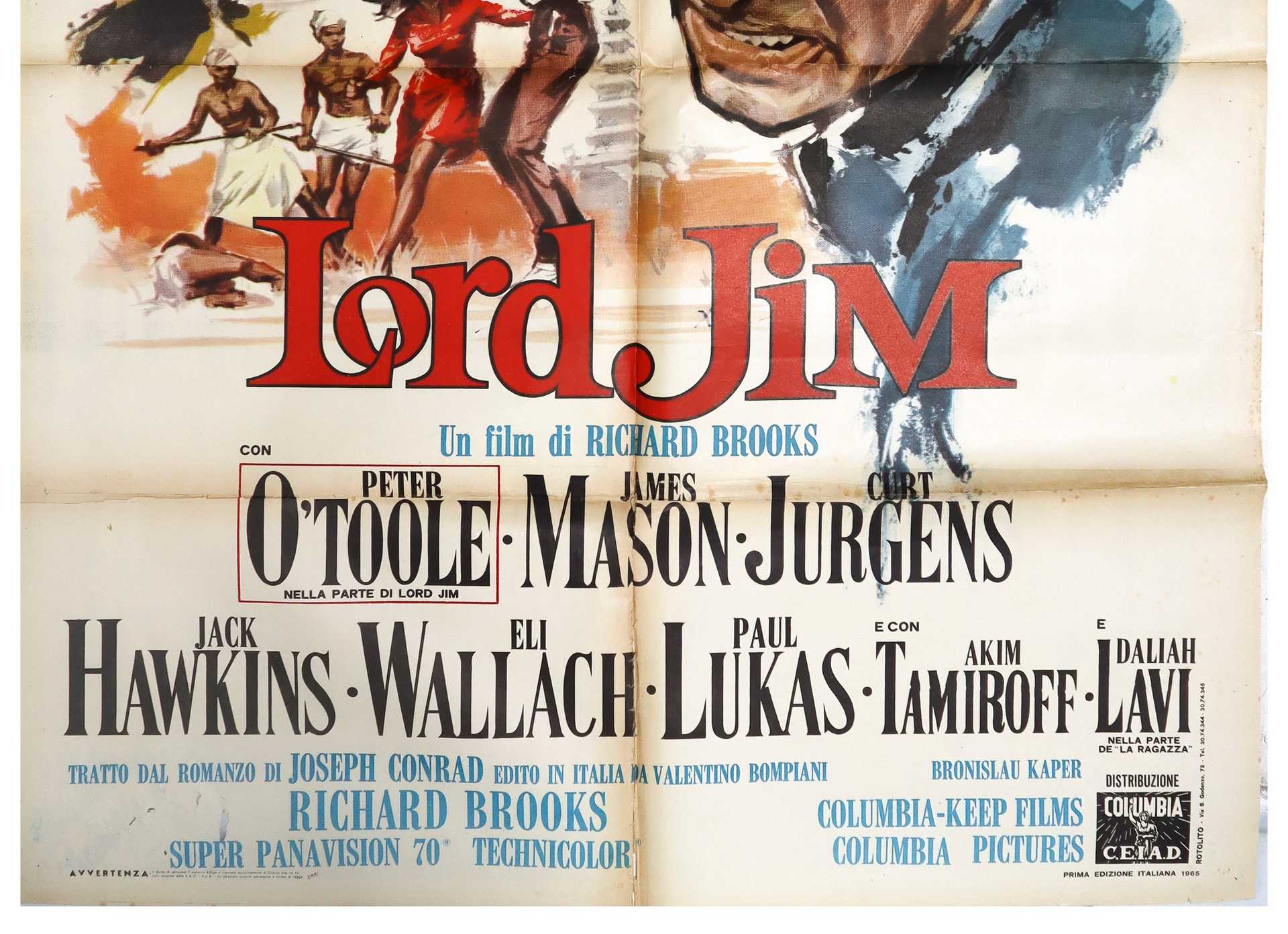 Manifesto cinema due fogli ''Lord Jim'', 1965 cm 140x100 Prima edizione italiana, Rotolito, normali segni d'uso, presenti buchi e nastroPrima edizione italiana, Rotolito, normali segni d'uso, presenti buchi e nastro