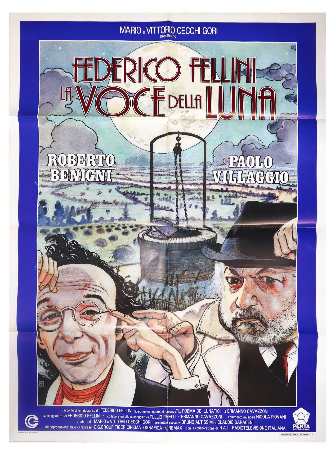 Manifesto cinema due fogli ''La voce della luna'', 1990 cm 140x100 Prima edizione italiana, Selegrafica - Roma, normali segni d'usoPrima edizione italiana, Selegrafica - Roma, normali segni d'uso