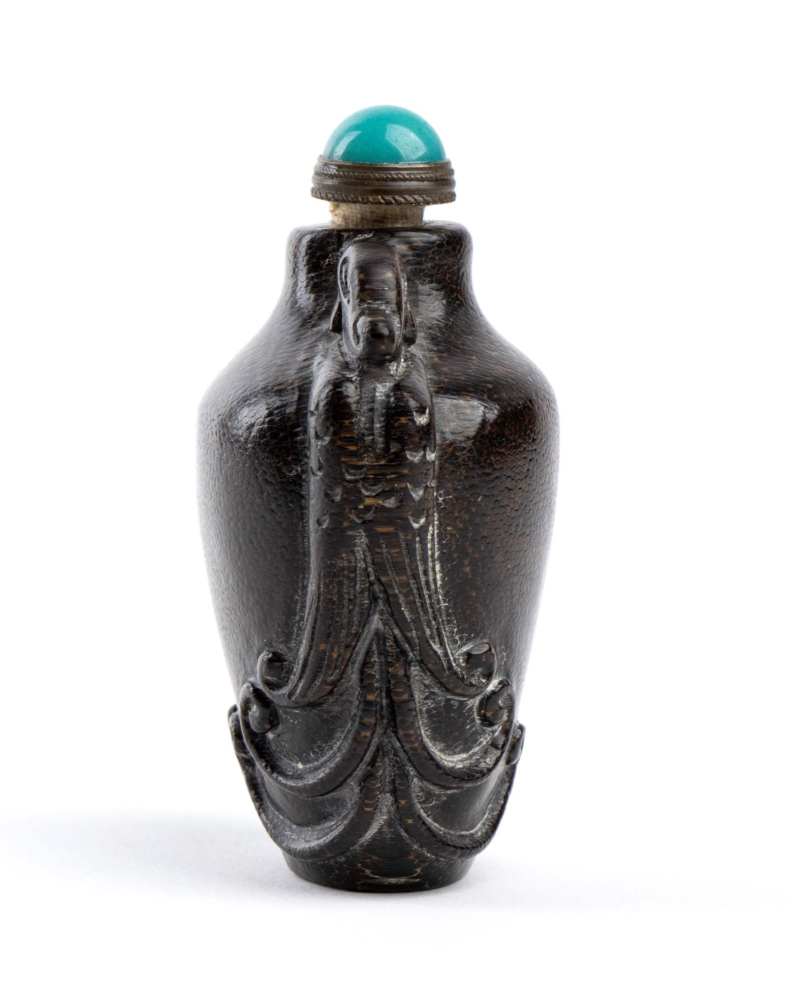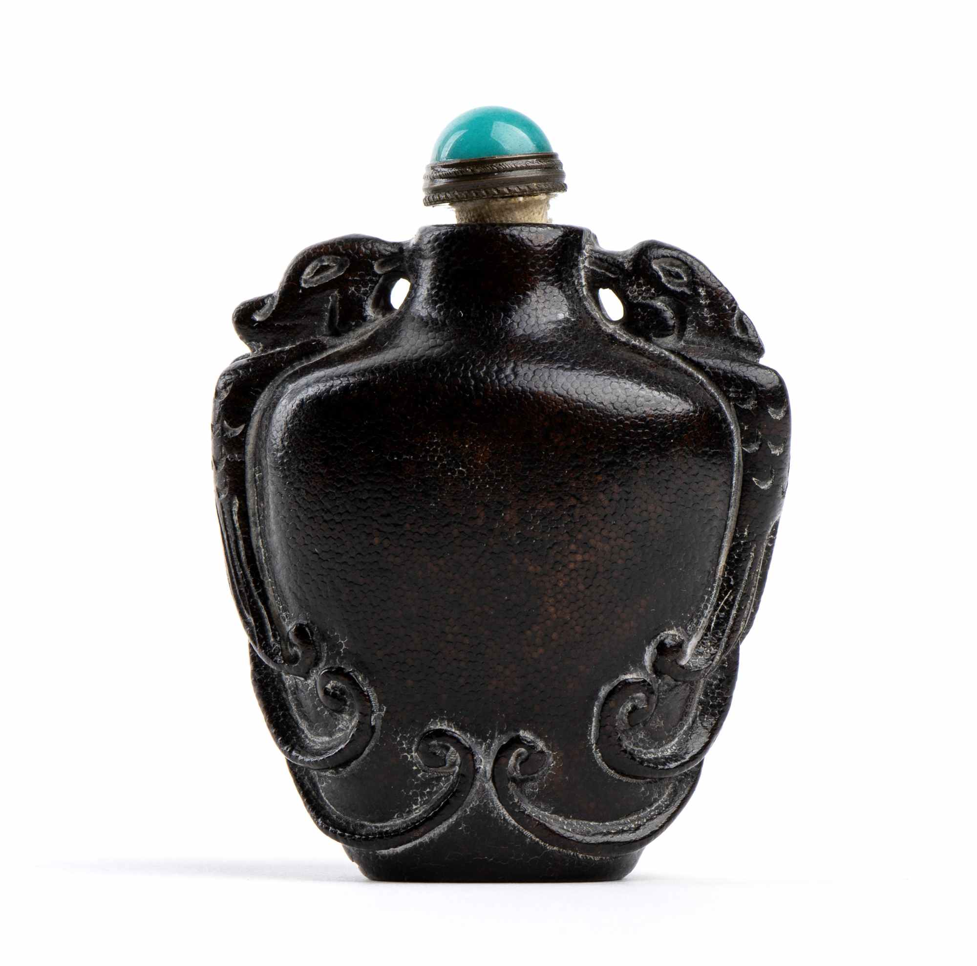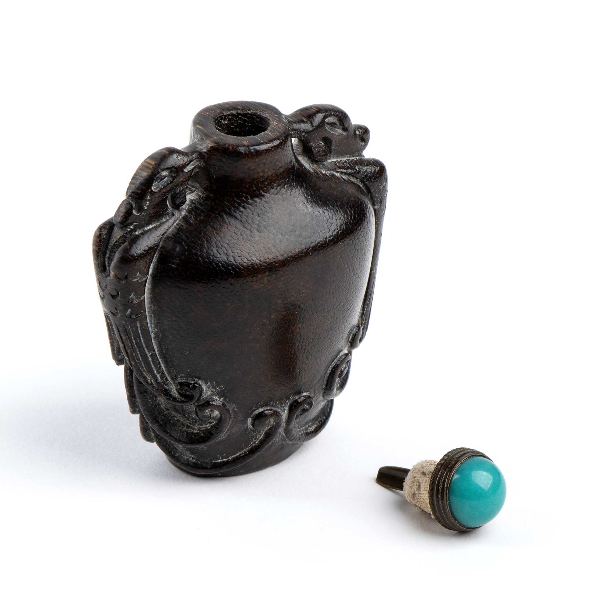 SNUFF BOTTLE IN CORNO CON TAPPO IN METALLO E VETRO