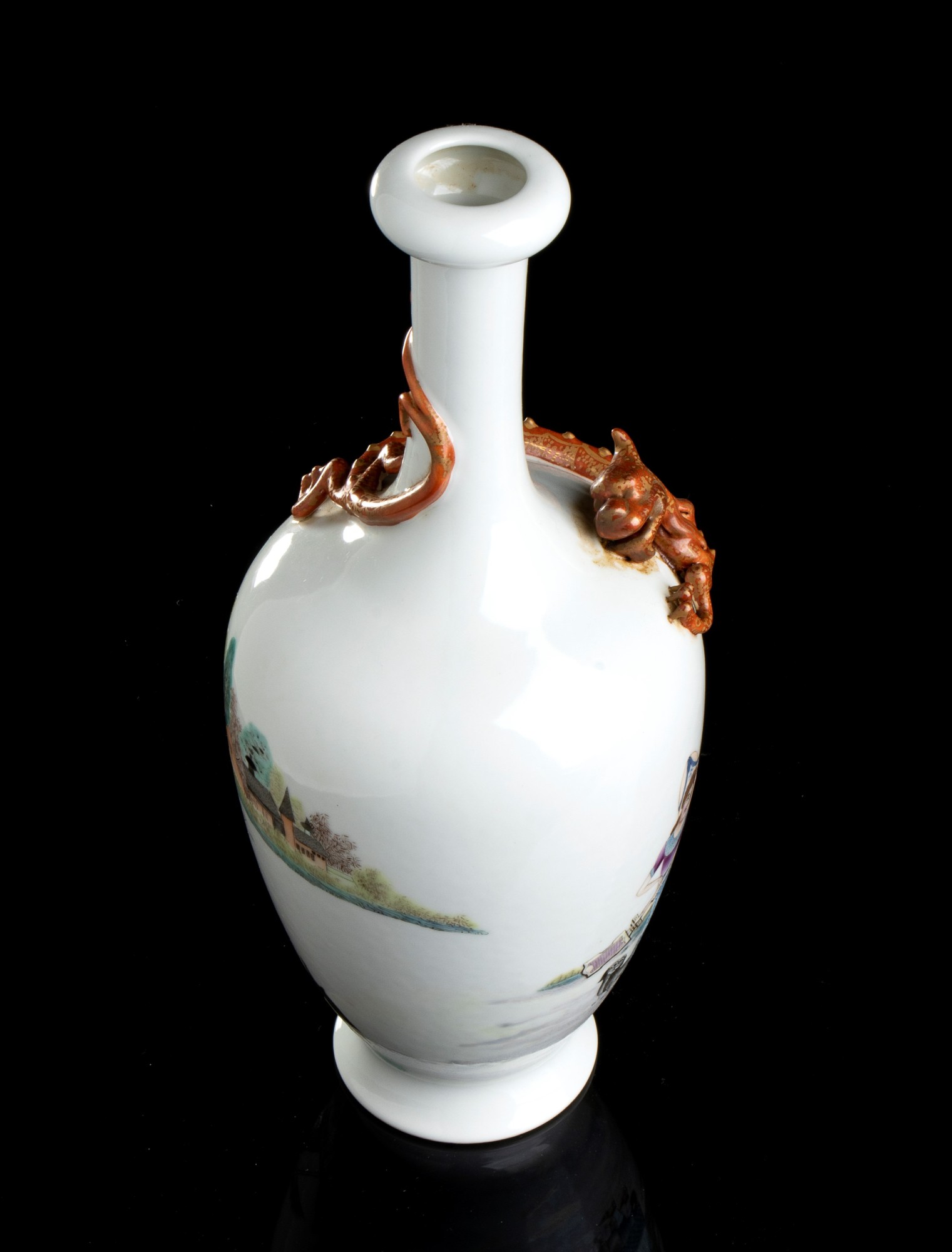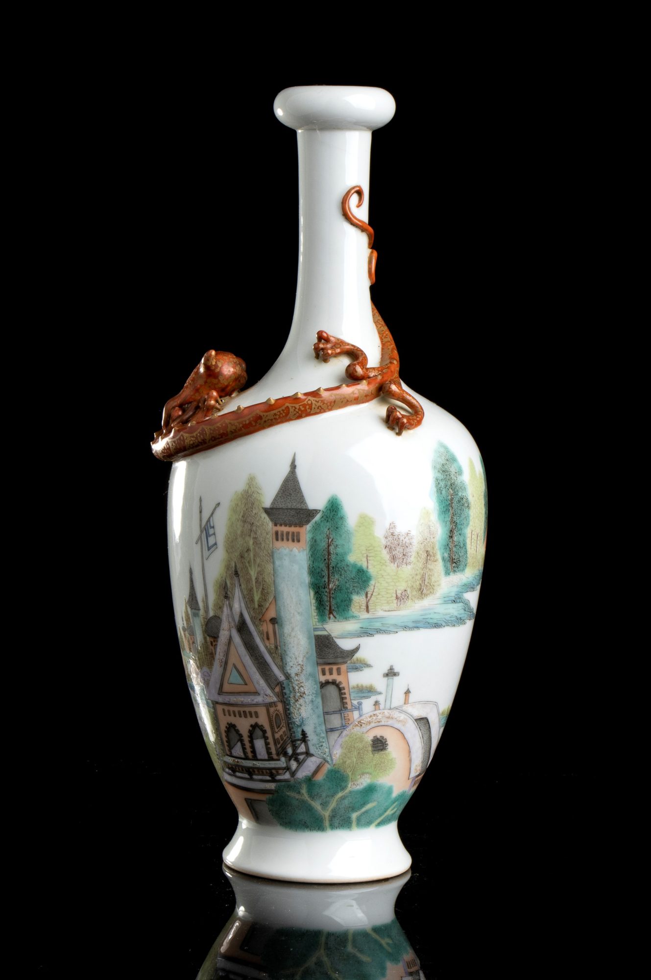 VASO A BOTTIGLIA IN PORCELLANA CON DECORO A SMALTI POLICROMI