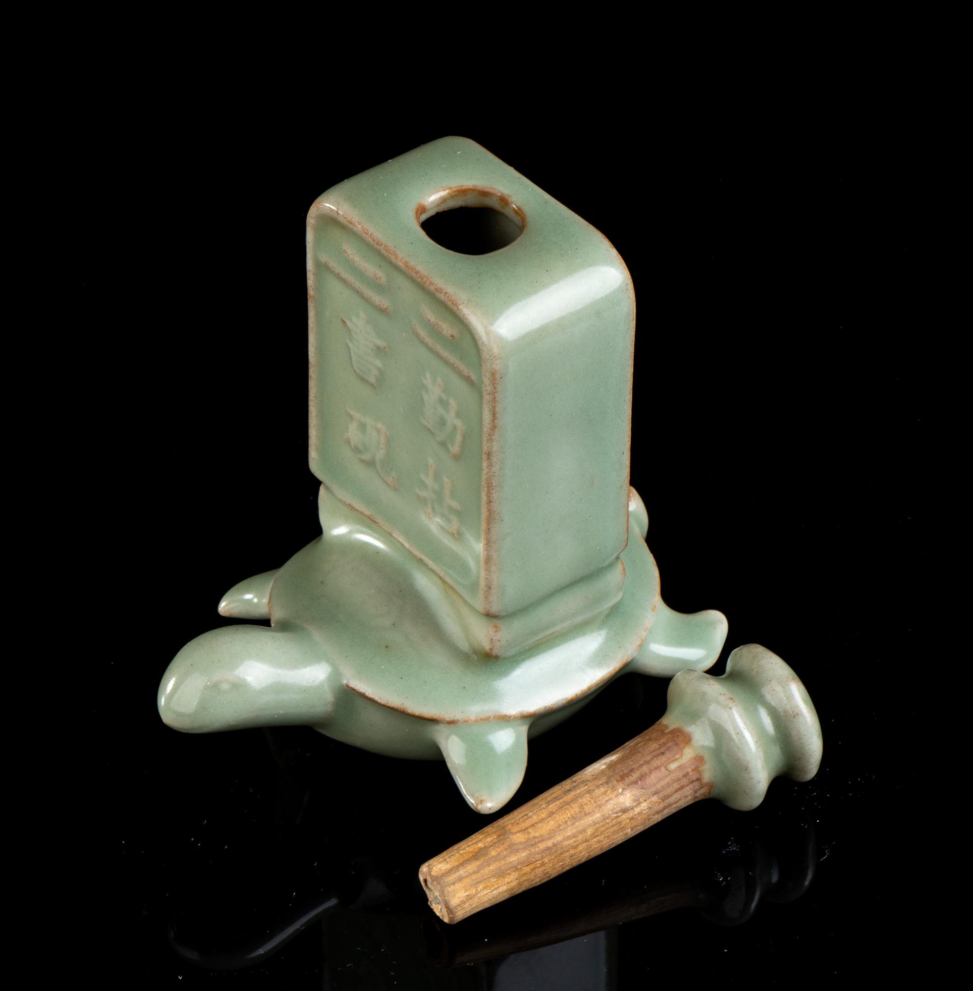 CONTENITORE ZOOMORFO IN CERAMICA CON INVETRIATURA CÉLADON