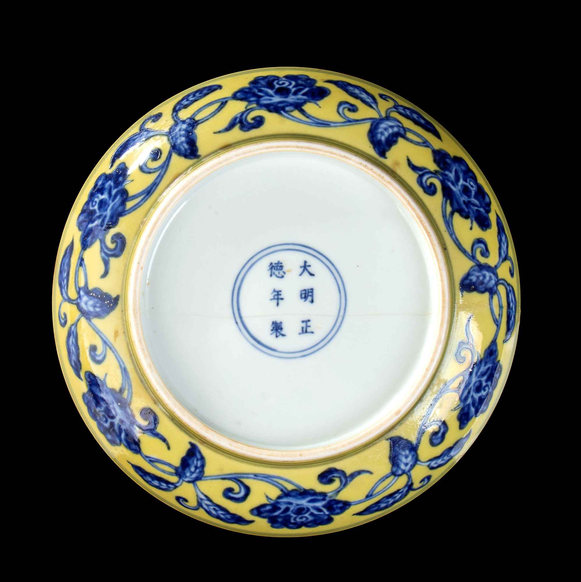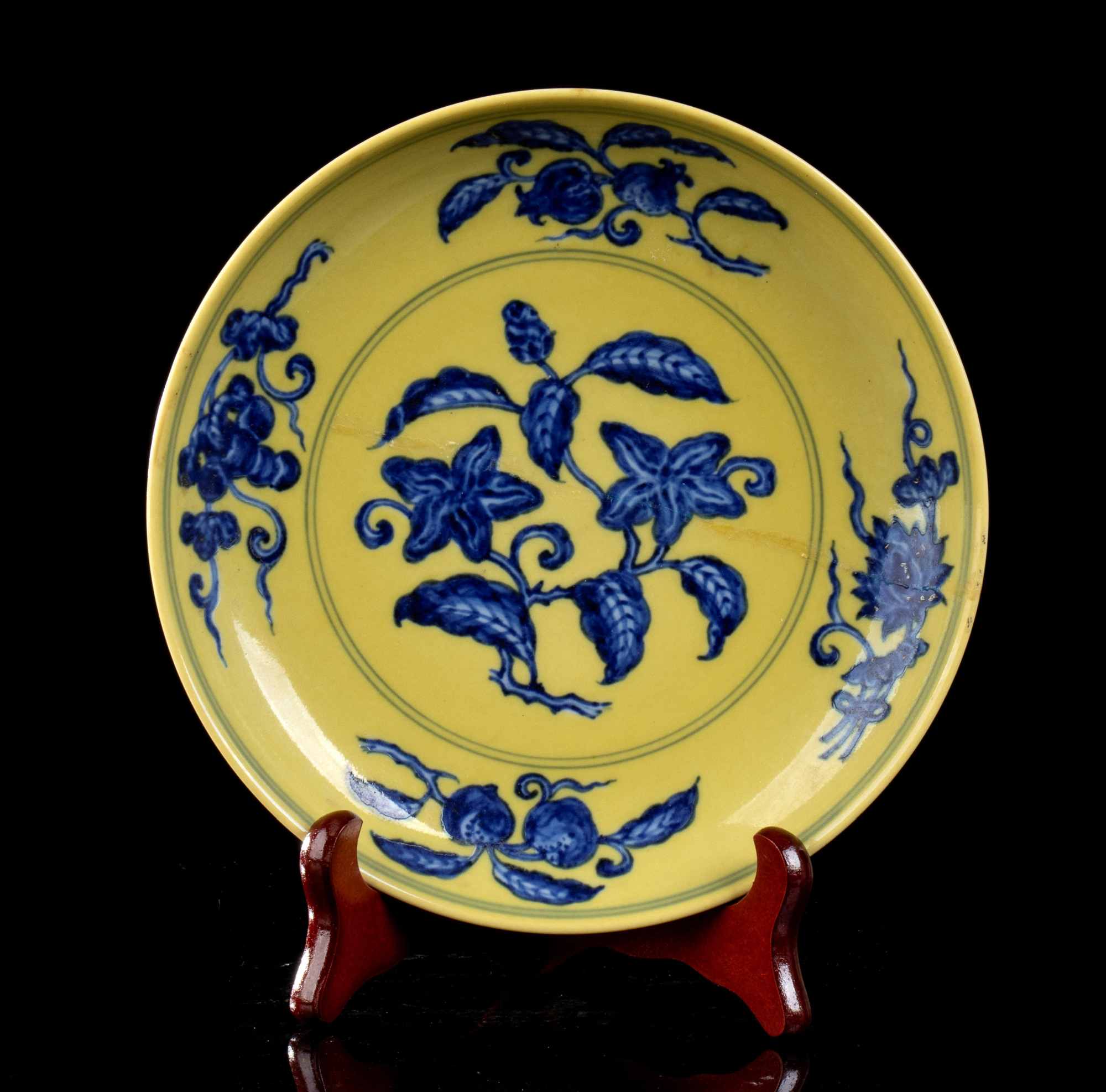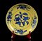 PIATTO IN PORCELLANA CON DECORO A SMALTI BLU E GIALLO