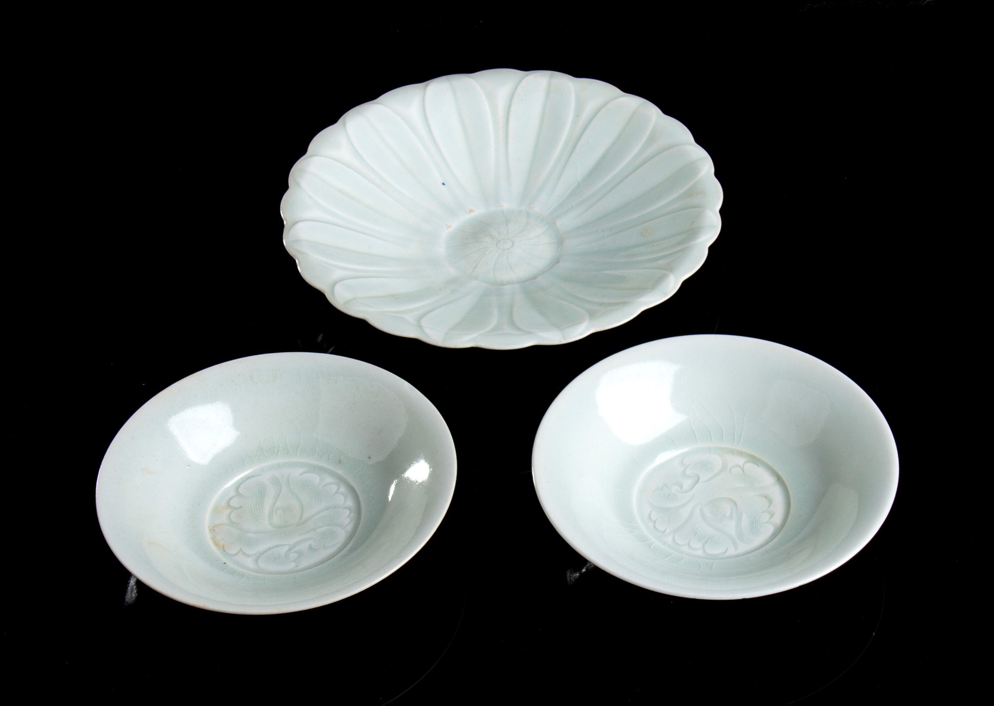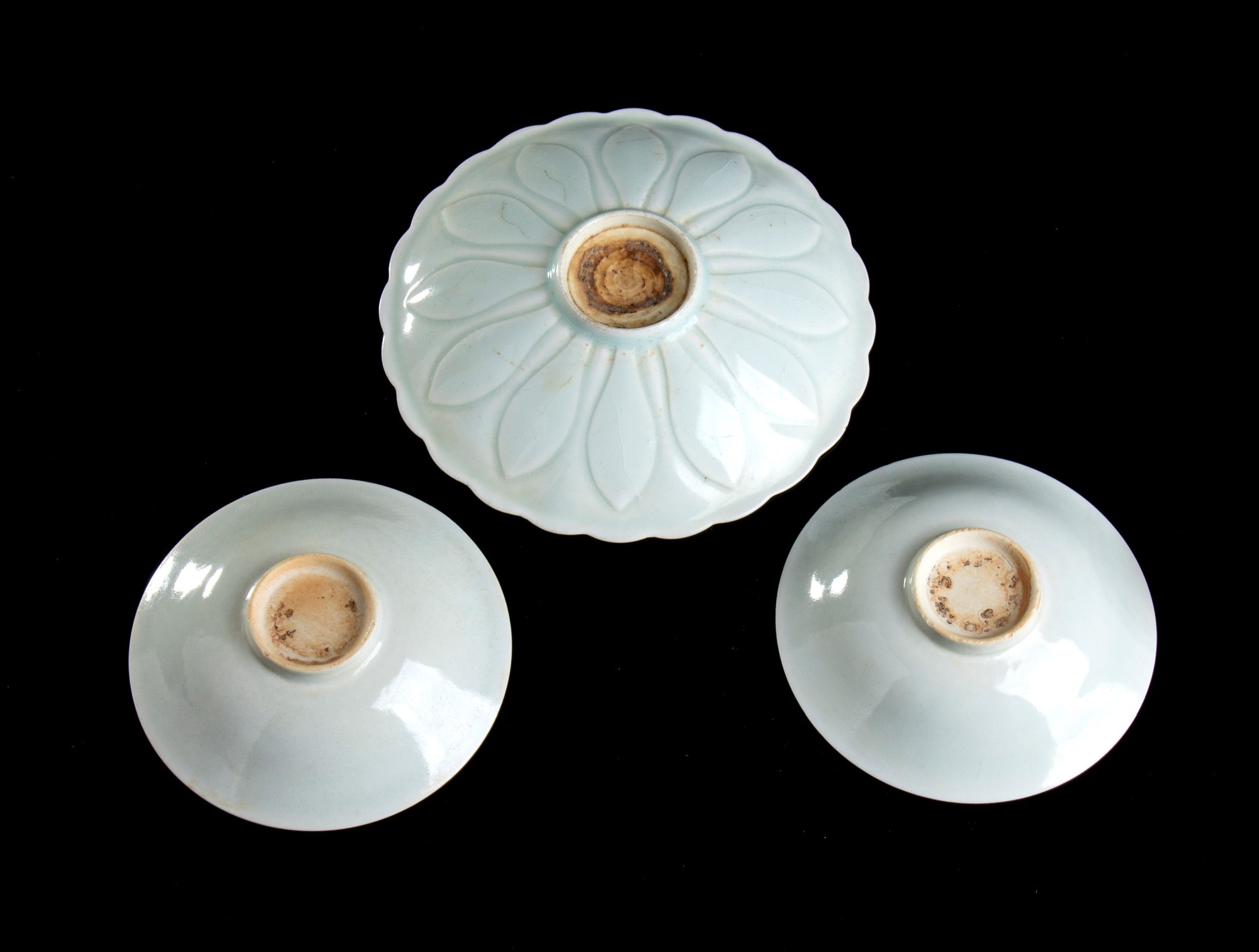 TRE PIATTINI IN PORCELLANA CON INVETRIATURA QINGBAI