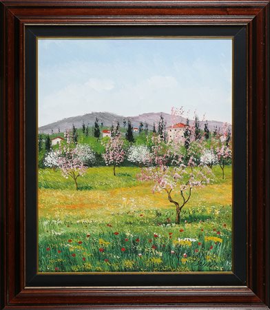SOFFICI PIERPAOLO Senza titolo. Olio su cartone telato. Cm 54,00 x 65,00. Firma in basso a destra. Cornice presente