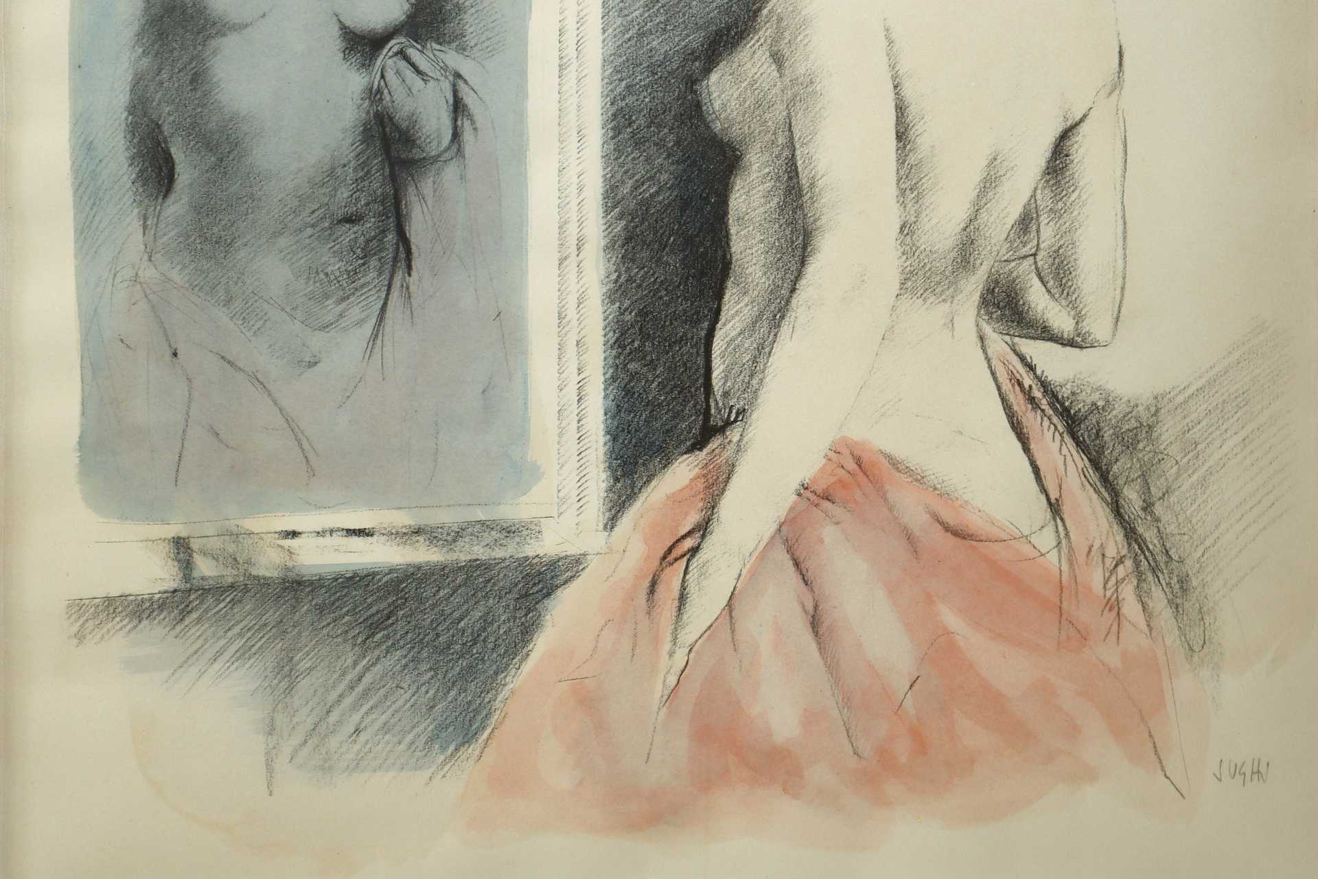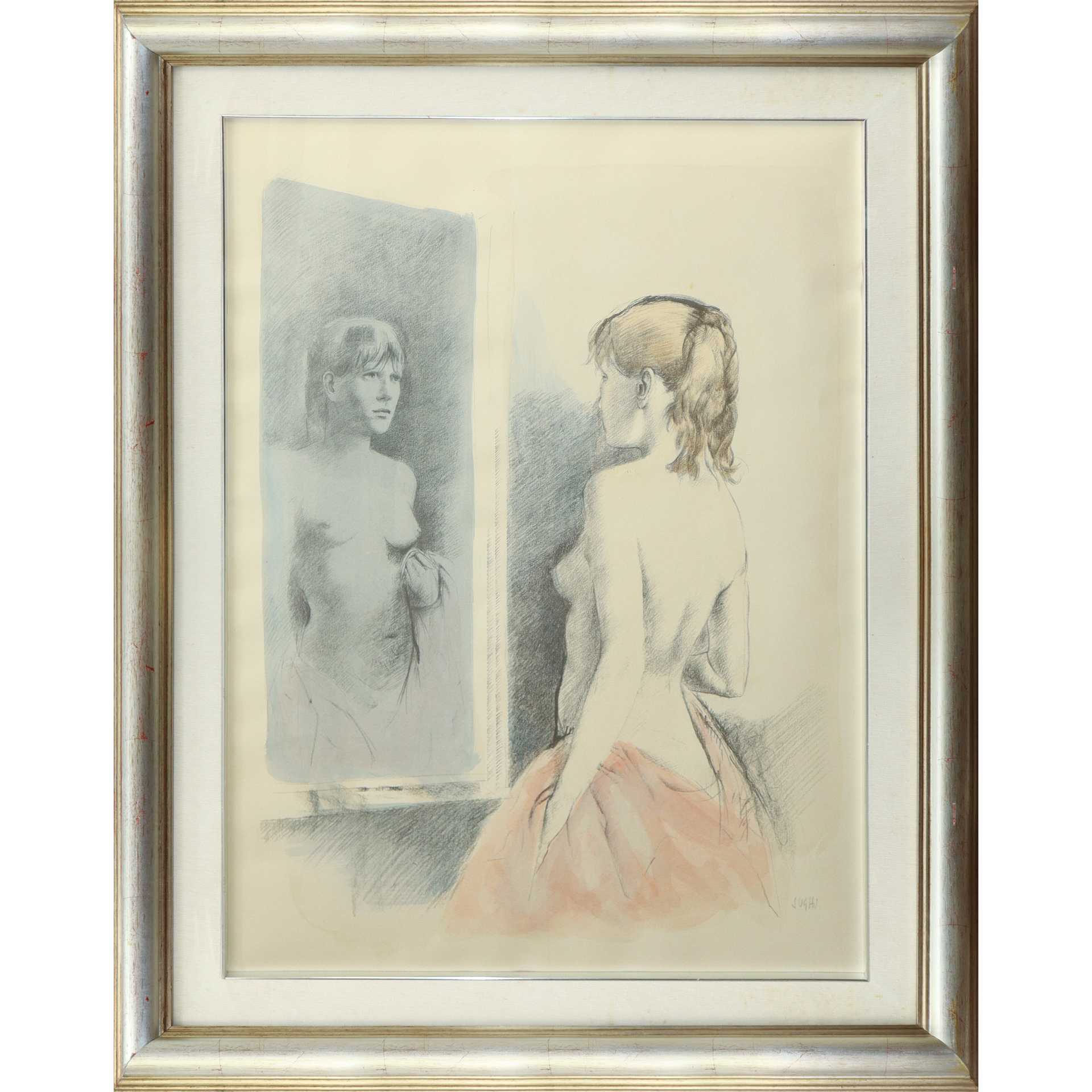 Alberto Sughi (Cesena 1928-Bologna 2012) - Donna nuda allo specchio H cm 79x57 - in cornice H cm 101x79 Disegno acquerellato Firmato in basso a destra