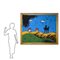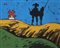 Tano Festa (Roma 2 novembre 1938-Roma 9 gennaio 1988) - Paesaggio con mulini e Don Chisciotte, 80s 130x160, in cornice 146x176 Acrilici su tela Archivio Tano Festa N. 80131/d 543 , Archivio Soligo, Roma. Collezione Livio Collina.