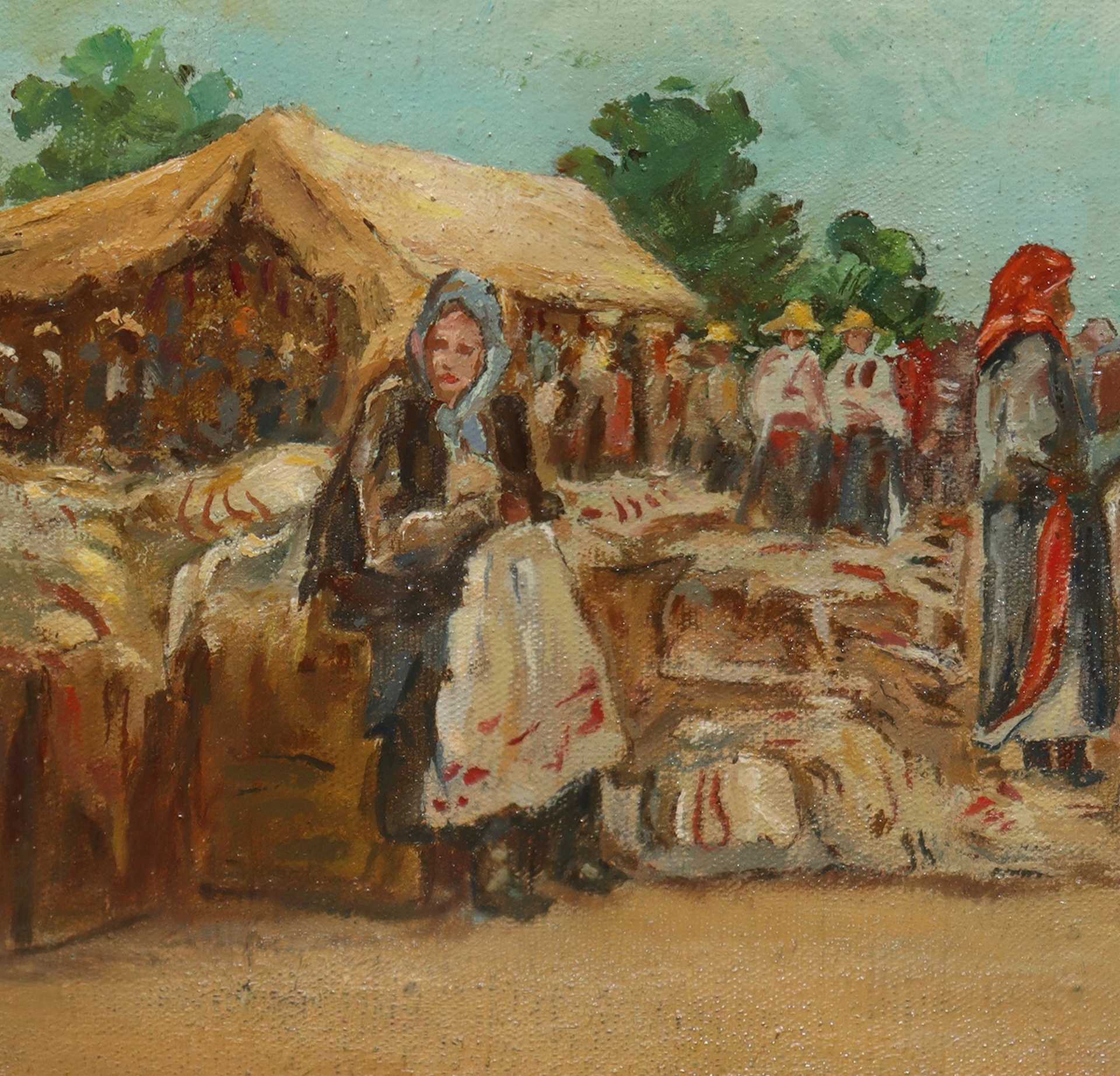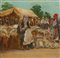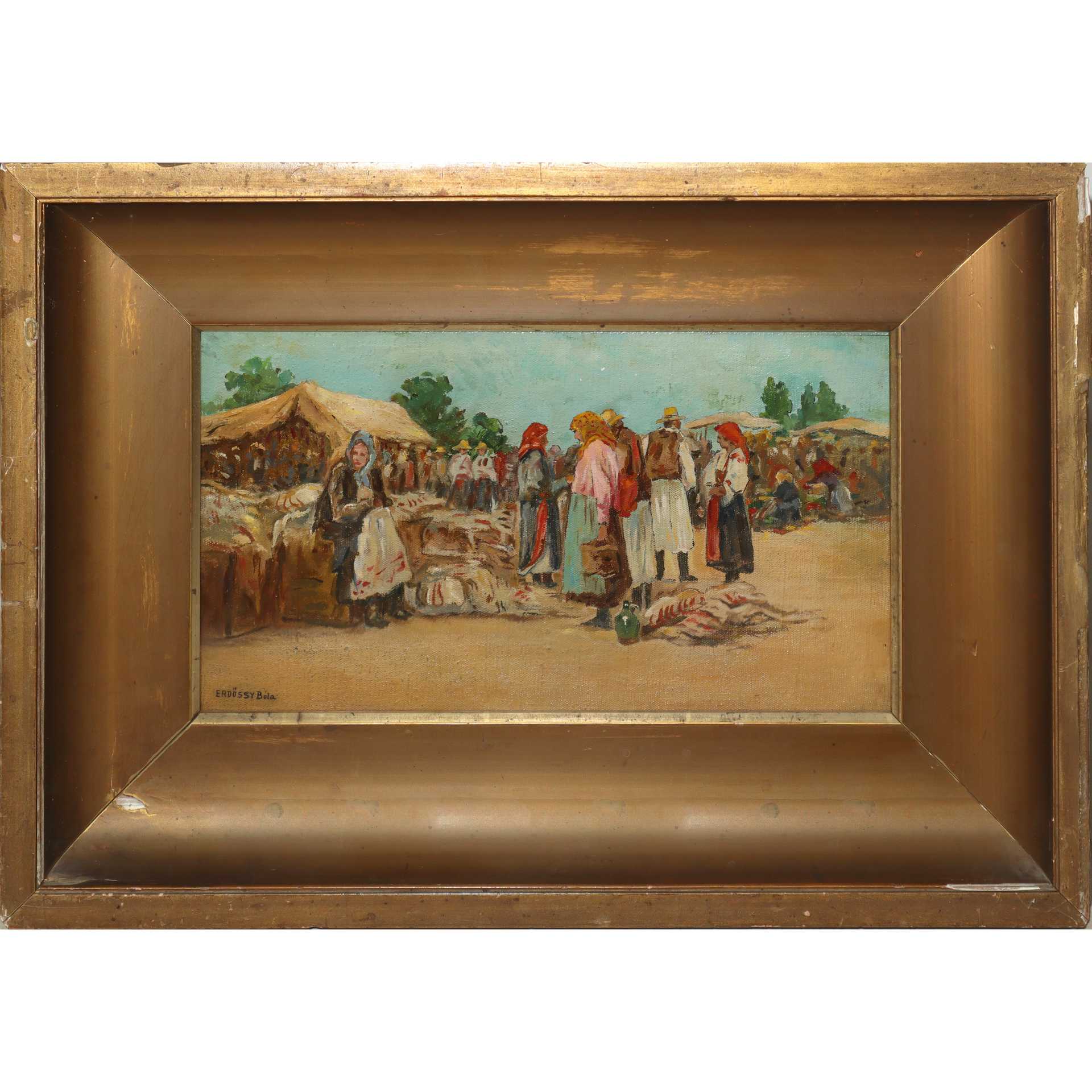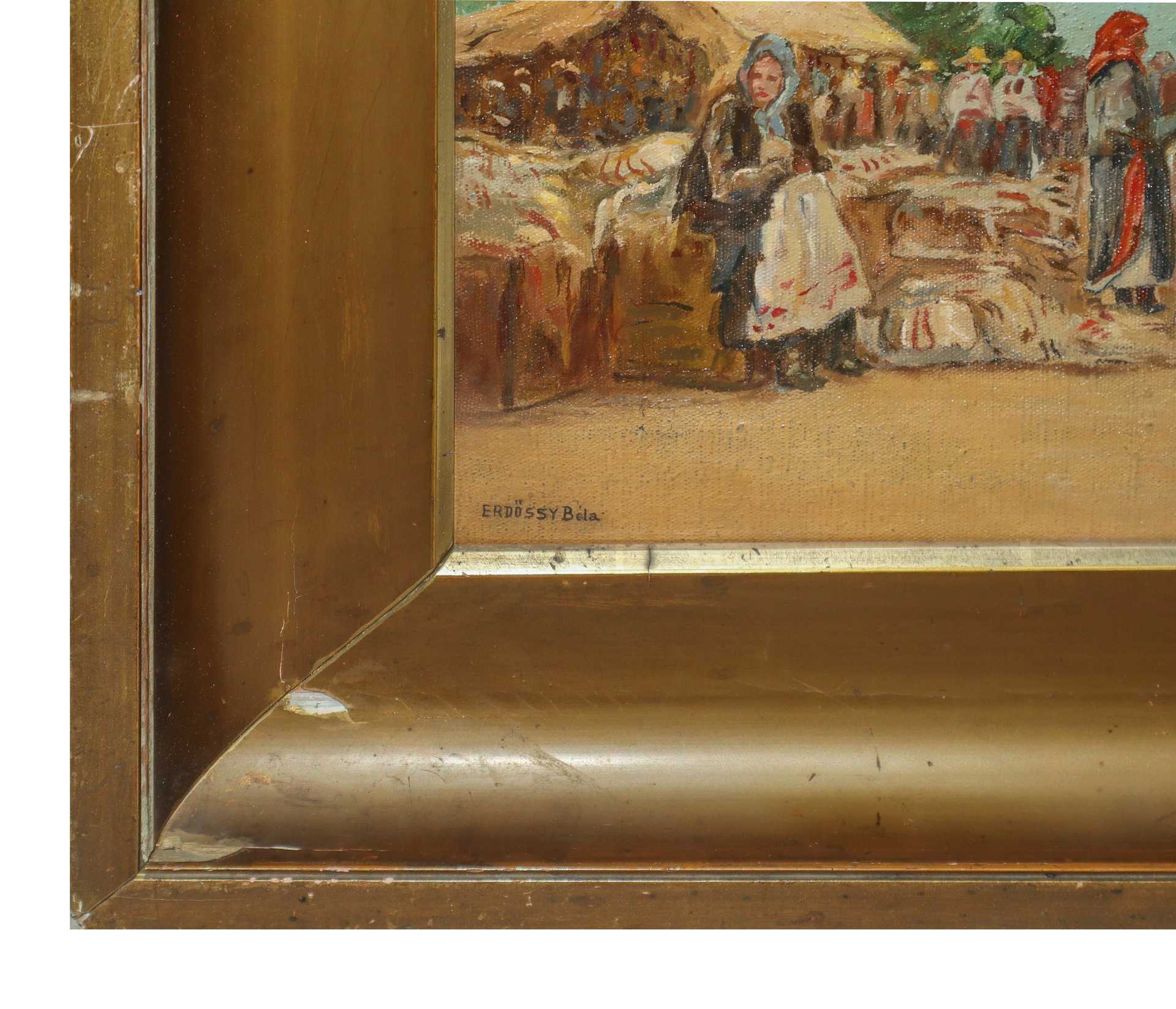 ERDÖSSY Bela (1871-Budapest 1928) - Mercato all'aperto cm 21,3x36 in cornice cm 37,5x53 Olio su tela Firmato in basso a sinistra