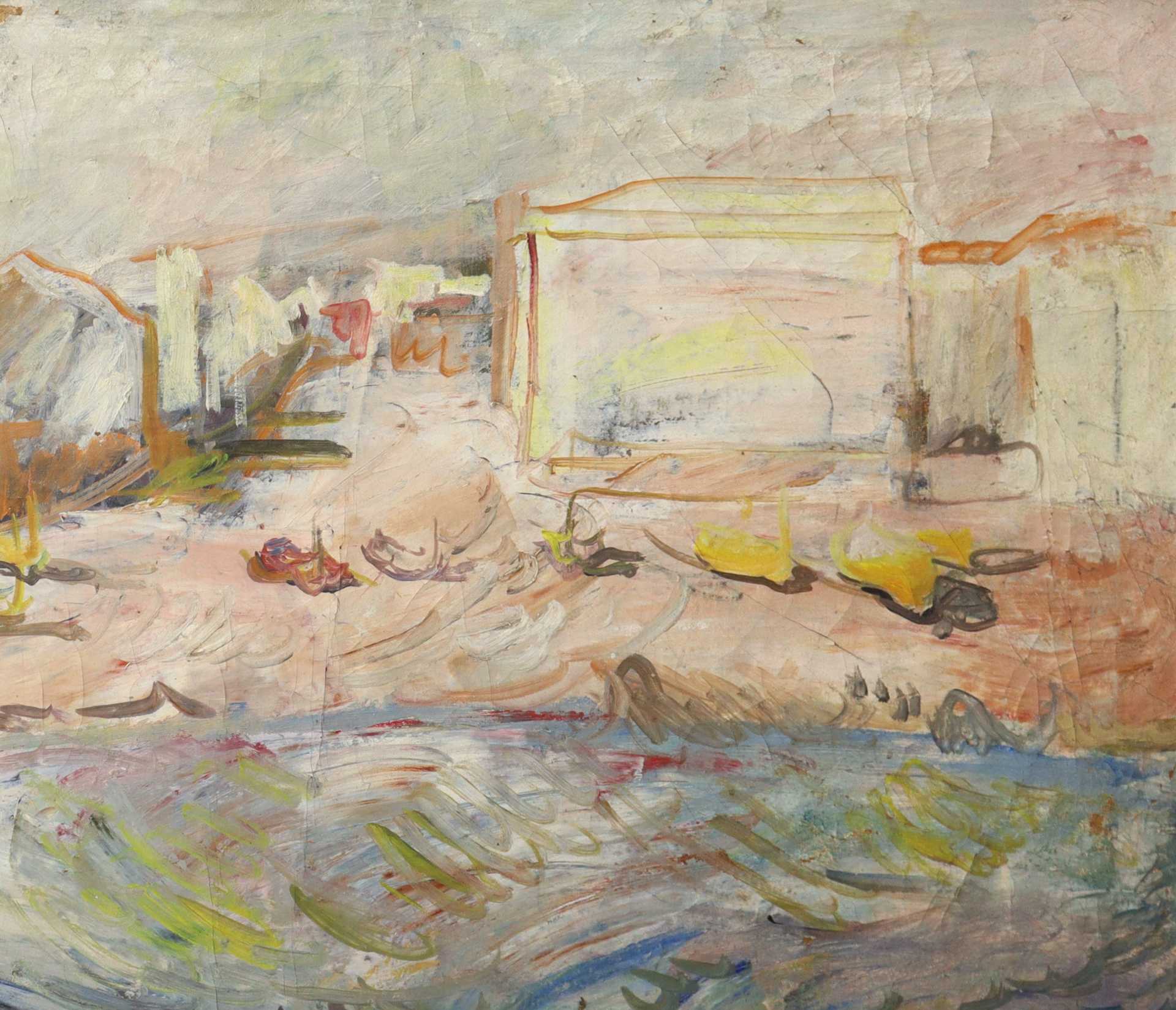 Elio Romano (Trapani 1909-Catania 1996) - Marina con barche H cm 62x96 Olio su tela Firmato in basso a destra.