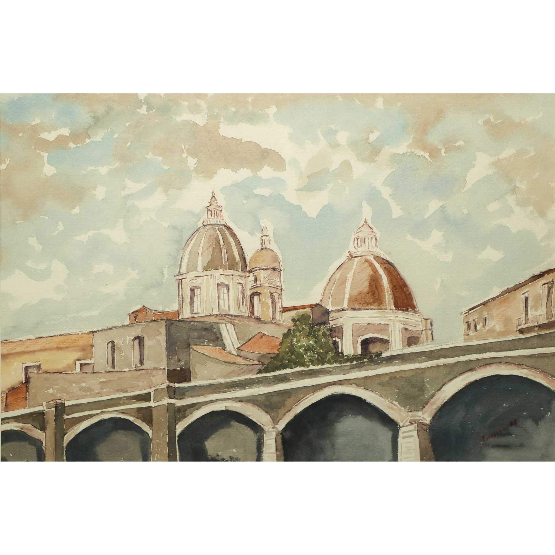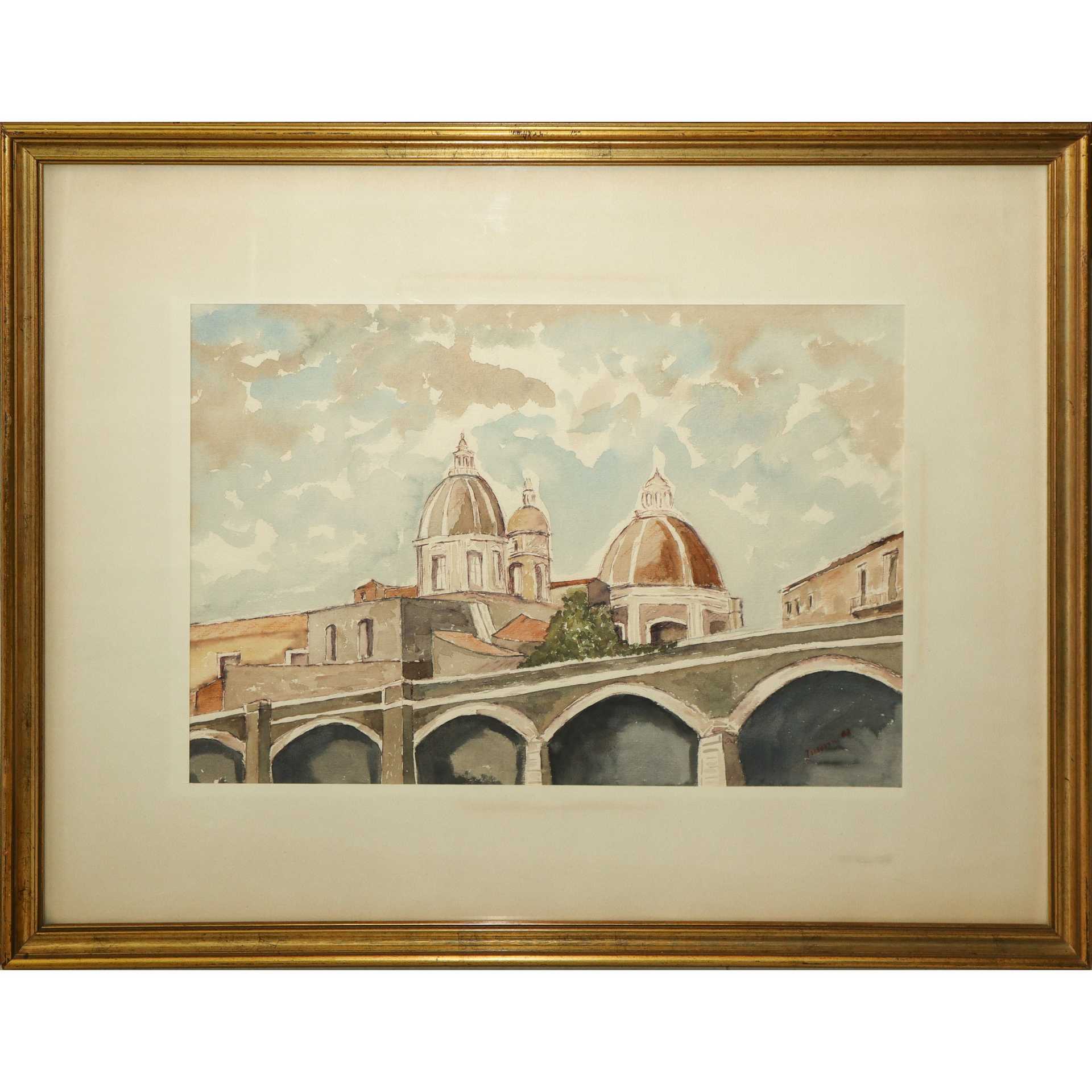 Lorenzo Inserra - Archi della Marina e Cupola del Duomo di Catania, 1983 cm 34x48 in cornice cm 58x73