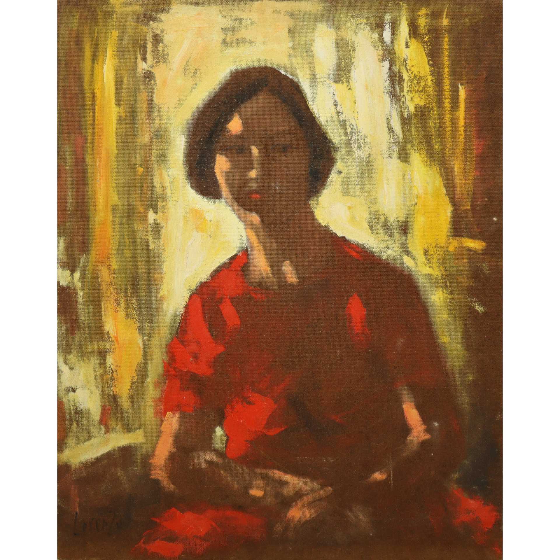Albino Lorenzo (Tropea 1922-2005) - Donna, 60s/70s H cm 80x60 Olio su masonite