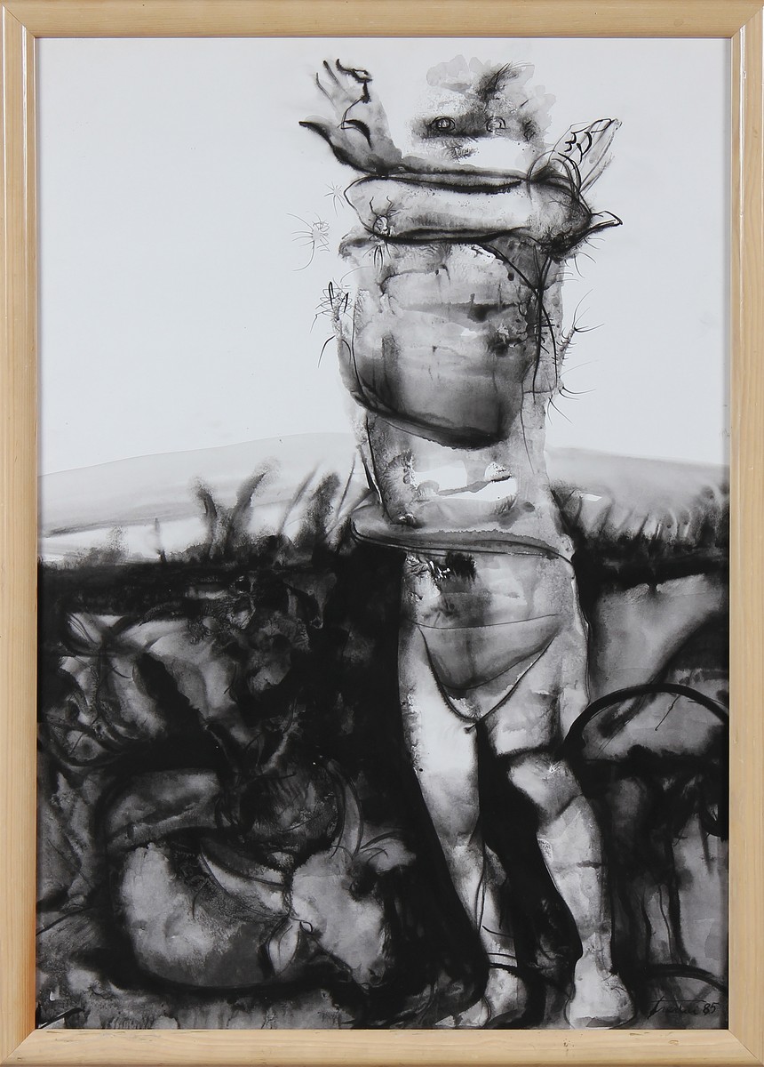 TREDICI PIERO (n. 1928) Senza titolo. 1985. Acquarello su carta. Cm 49,00 x 70,00. Firma e anno in basso a destra. Cornice presente