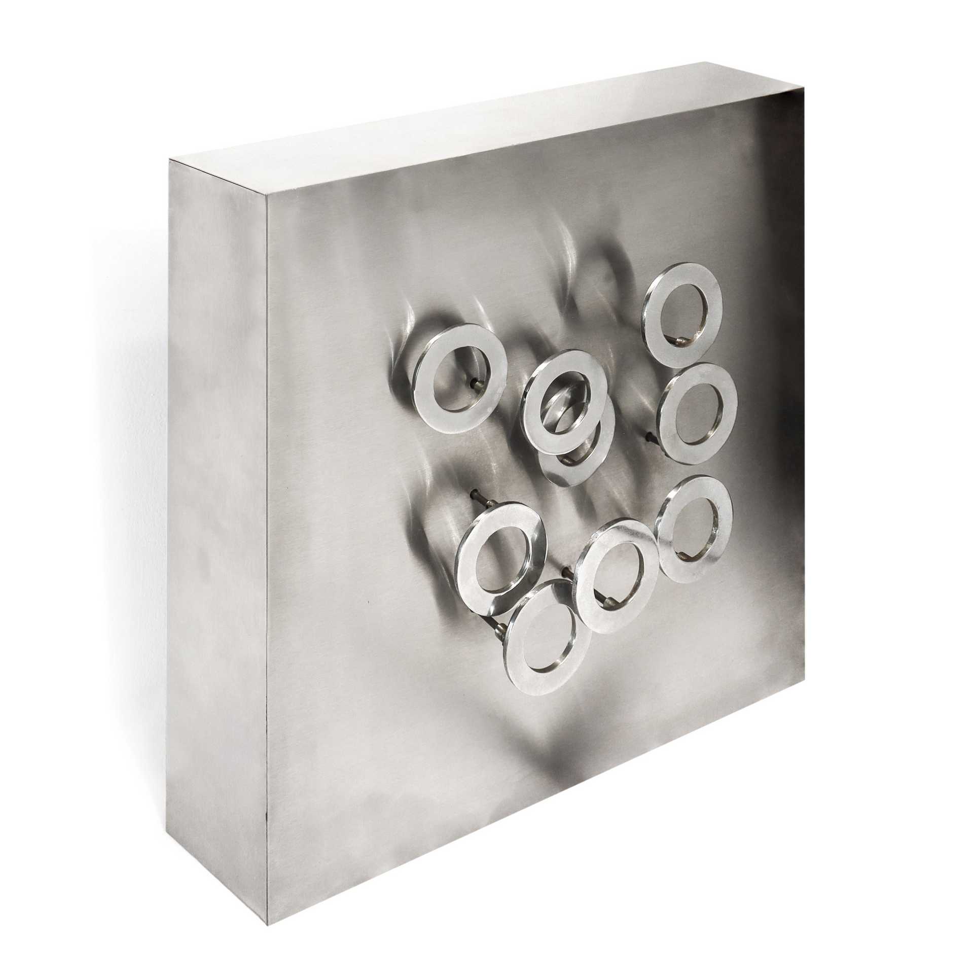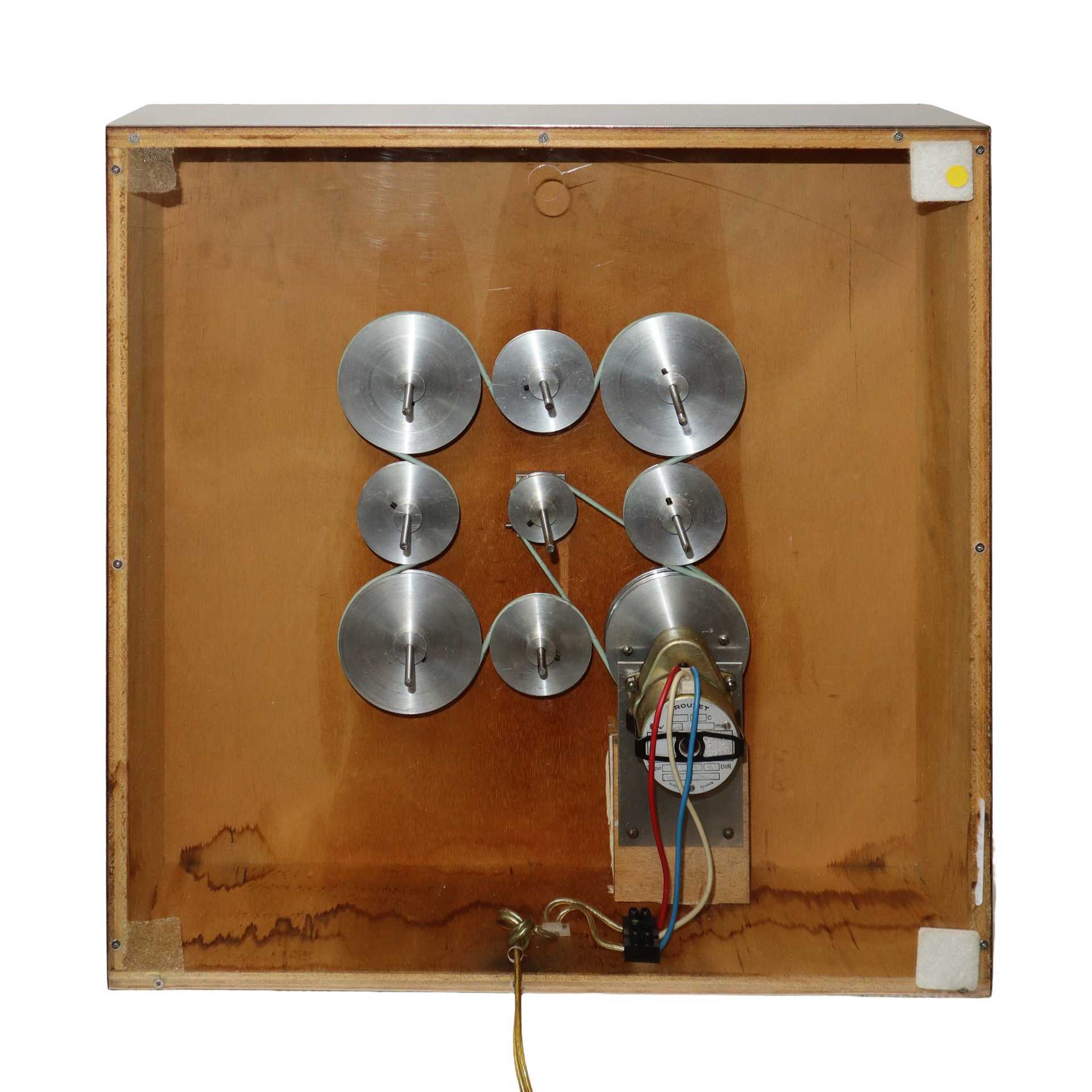 Hugo Demarco (Buenos Aires 13/07/1932-Parigi 28/11/1995) - Relief à déplacement continuel, 1975 H cm 40x40x10 Metallo, legno, motore elettrico Funzionante. Firma e titolo dell'autore nella parte interna della cassa.