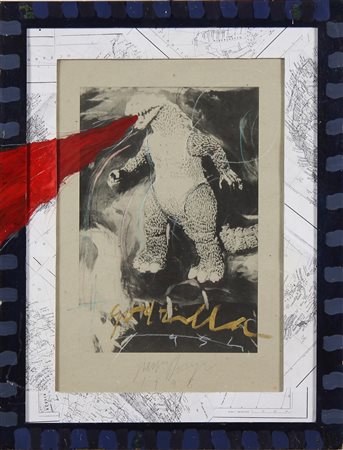 DORIGO GIANNI (n. 1953) Godzilla. 1998. Collage e tecnica mista su...