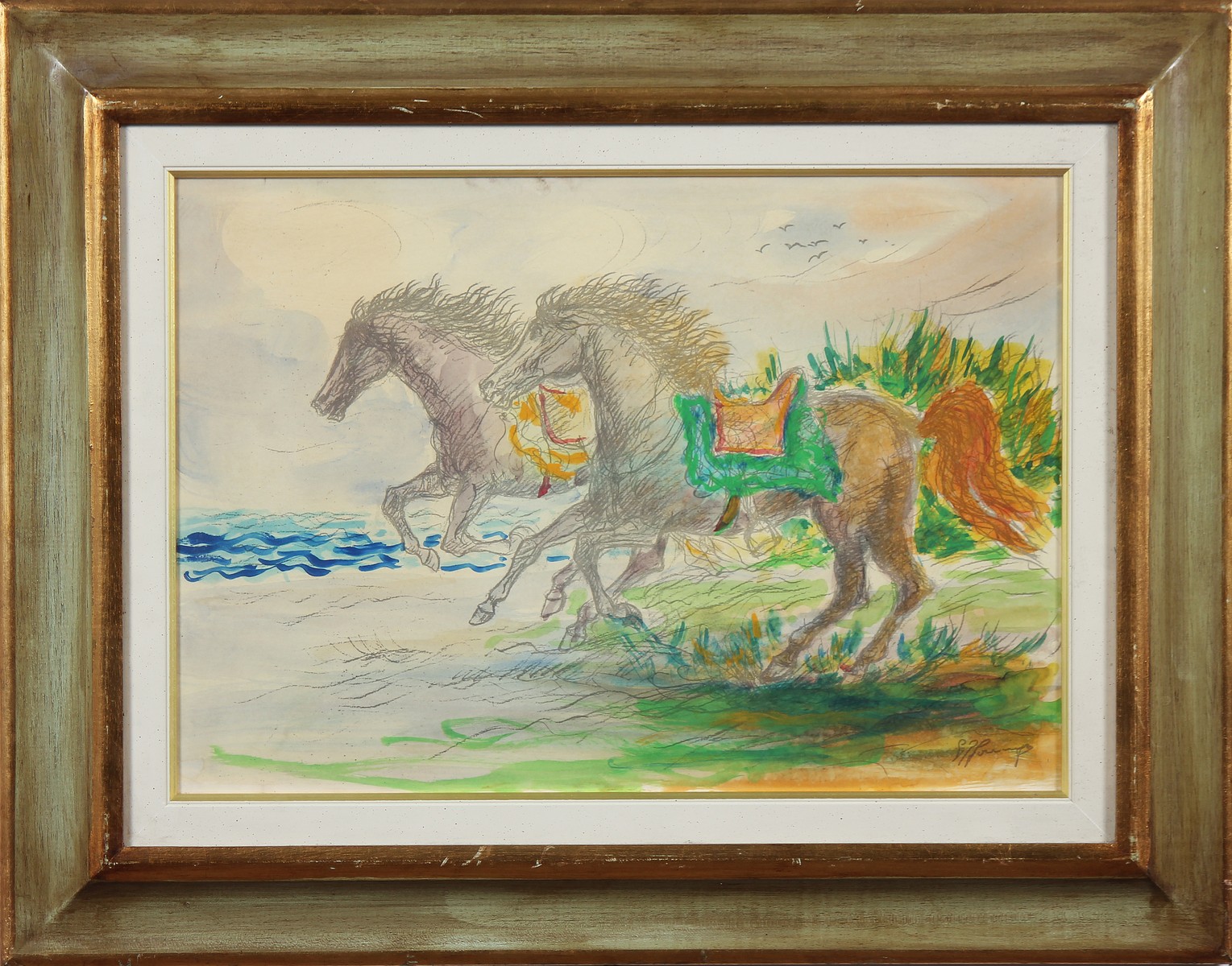 GONZAGA GIOVAN FRANCESCO (1921 - 2007) Cavalli. Disegno su carta. Cm 50,00 x 34,00. Firmato in basso a destra. Cornice presente